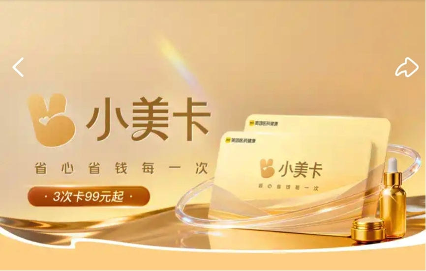 购买带有“小美卡”标签的团购后,用户不办大额储值卡也可享受优惠价格,实现“消费一次扣费一次”的结算模式,卡内剩余资金受平台监管,用户随时可退。“小美卡”可以帮用户避免可能存在的反复推销、储值门槛高、价格不透明、退款难等问题,让每一次美容消费体验,都能更轻松、更自由。