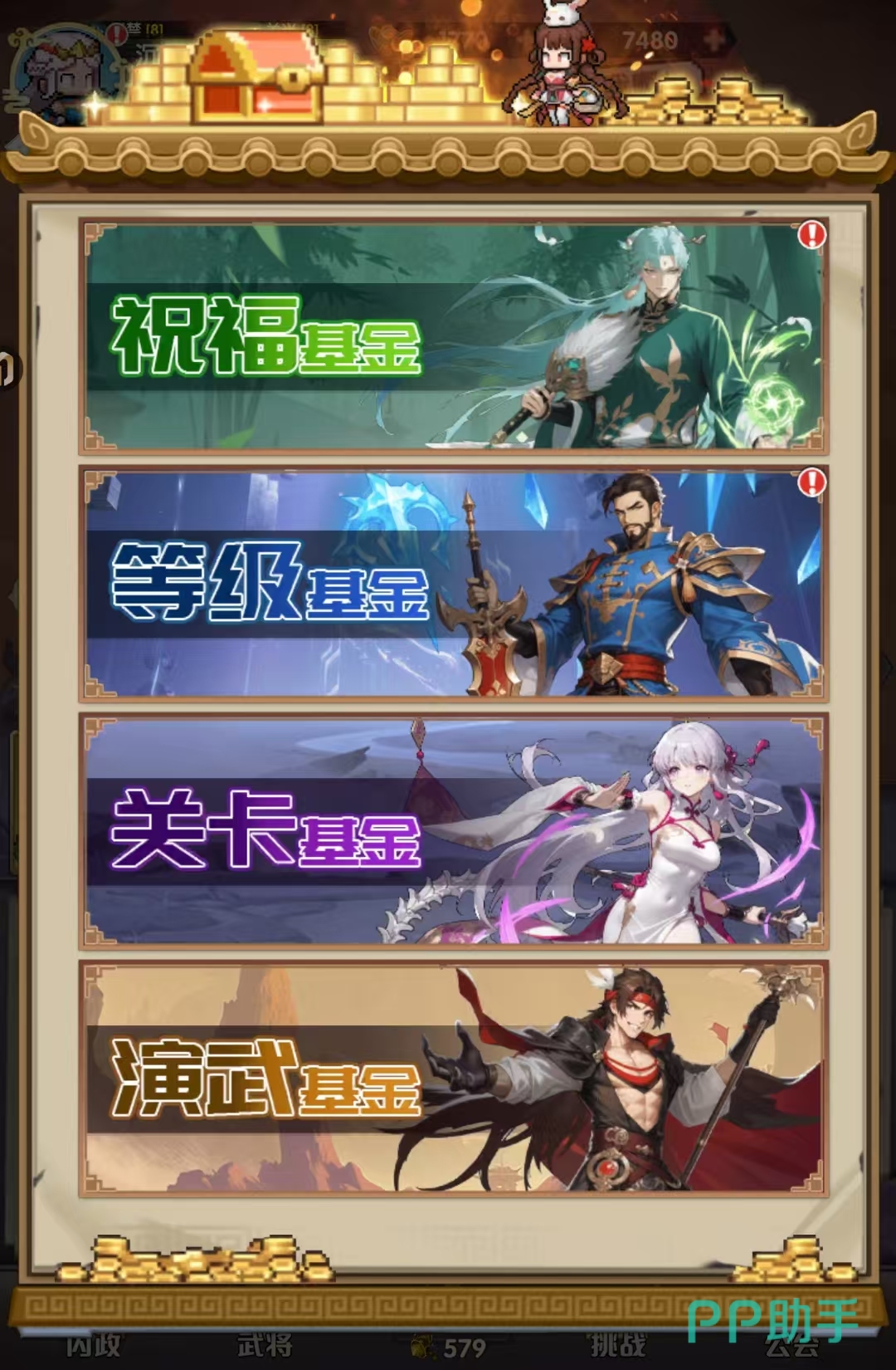 4、最后就是各类基金了,基金分为了祝福基金、关卡基金、等级基金和演武基金,小编推荐玩家选择“祝福基金”,祝福基金售价售价68元,能顺带解锁赵云,还能获得额外的招募券。其余的售价与价值太溢出,不划算的,当然氪佬玩家可以全部拿下。