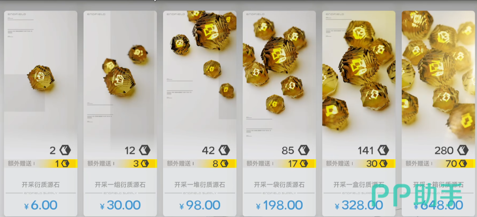 例如648元就能获得350颗源石,6元的话就只能获得3颗了。对比下来性价比还是特别高的,尤其是328元的价格,可以获得171颗源石,也就相当于少了几颗,同样值得大家入手!但毕竟钱不是大风刮来的,大家还是要理性消费。不是刚需的话,还可以从其他渠道中获取源石,例如月卡!
