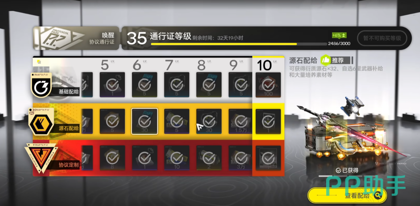 例如在通行证中获取源石,基础配给是不需要花钱的,但是所能获得的源石数量较少。所以建议大家升级为源石配给,就能通过做任务并提升等级的方式,获得数量更多的源石。至于协议定制,就看大家预算是否足够了。不足的话,保持源石配给即可。