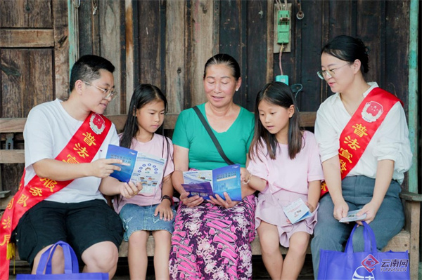 拿着宣传手册正在用傣话为村民细致讲解的是姐相镇司法所所长尹艳金。面对老少群体,她与同事总是能耐心地用村民们熟悉的亲切的语气,让晦涩难懂的内容脱离书面,以直观易懂的形式传递到村民内心。尹艳金表示,为了能切实帮助村民解决常见问题,普法团队重点关注邻里纠纷、未成年人保护、老人赡养等民生问题,让知识真正成为村民解决生活难题的“实用宝典”。