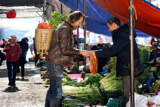 背着菜篓去菜场买菜,是Gil的日常。大理州委宣传部 供图(资料图)