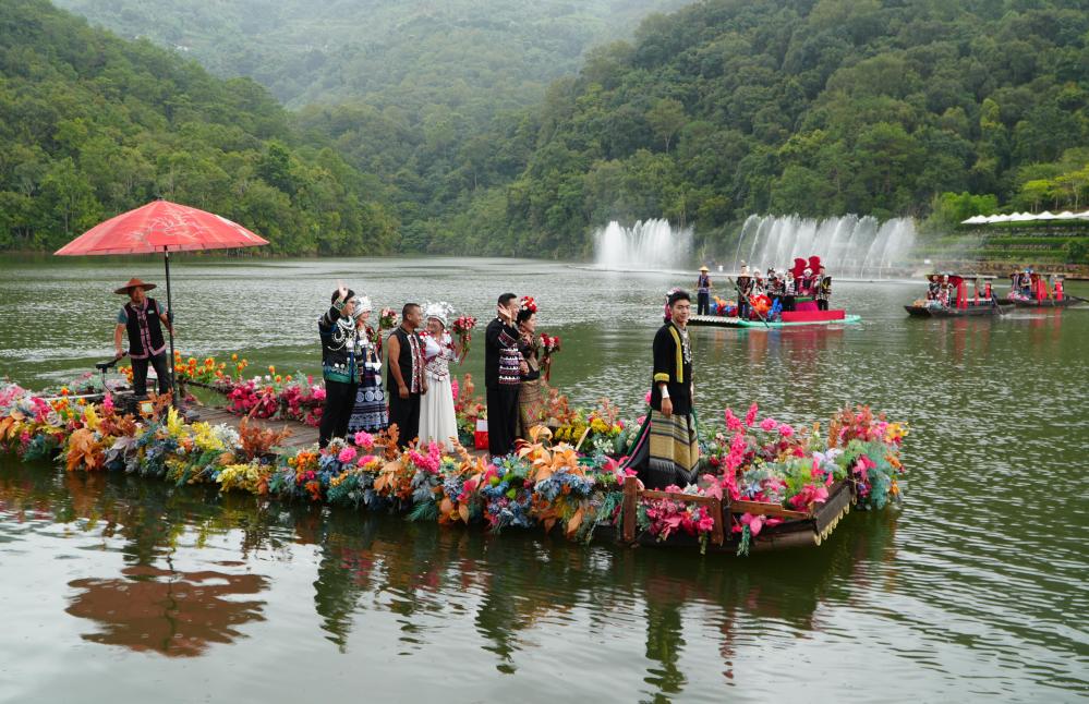 十二对新人乘装饰有普洱茶饼与绣球的花船驶过湖面,在“婚桥”许下誓言。婚礼仪式包括跨马鞍、拜天地、对拜等环节,并以茶盐盟誓——将茶饼与盐封存,约定十年后开启见证岁月。活动寓意新人风雨同舟、甘苦与共,展现地方文化特色与婚俗创新。