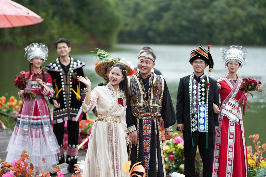 8月29日,在云南省普洱市思茅区普洱茶马古道遗址公园,一场融合马帮文化与现代婚俗的集体婚礼在七夕佳节举办。