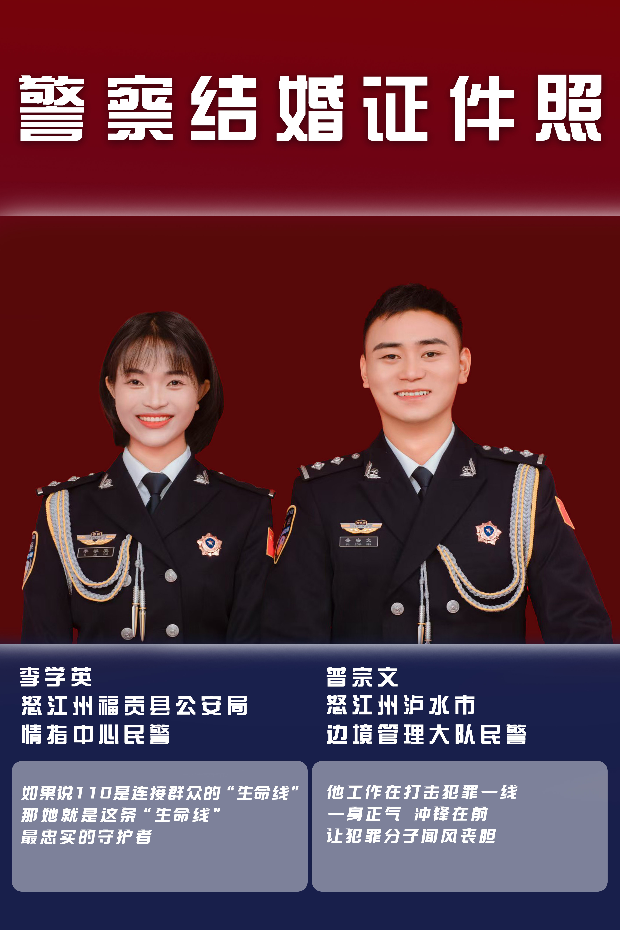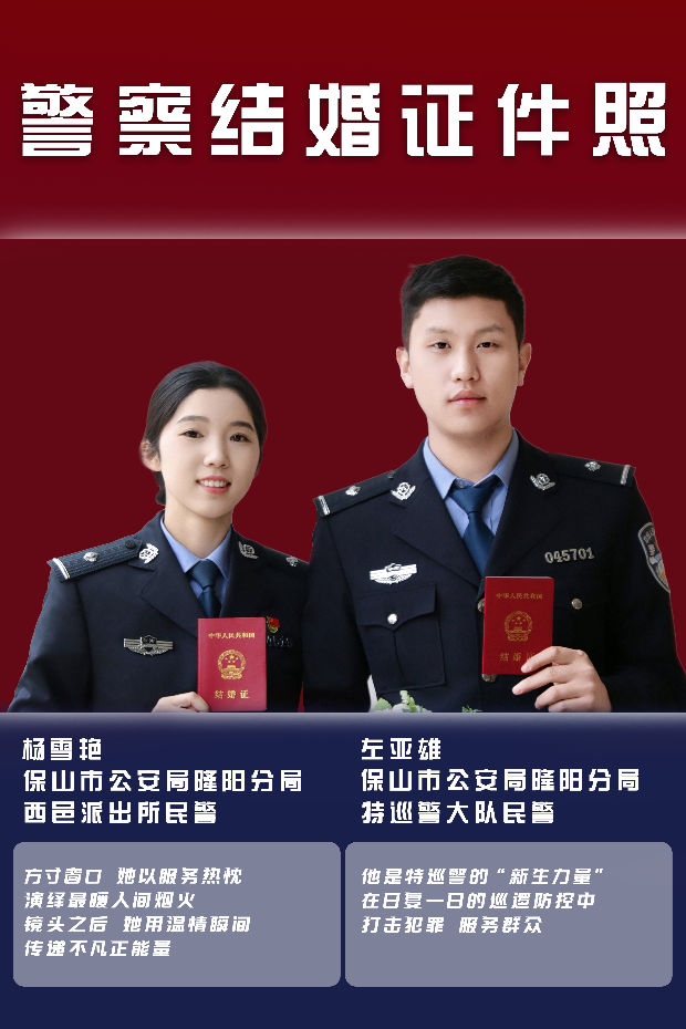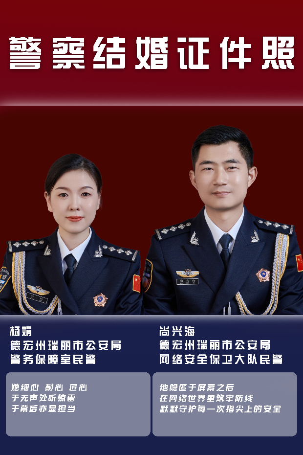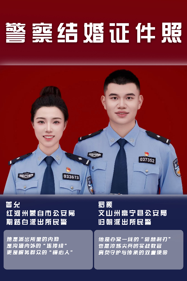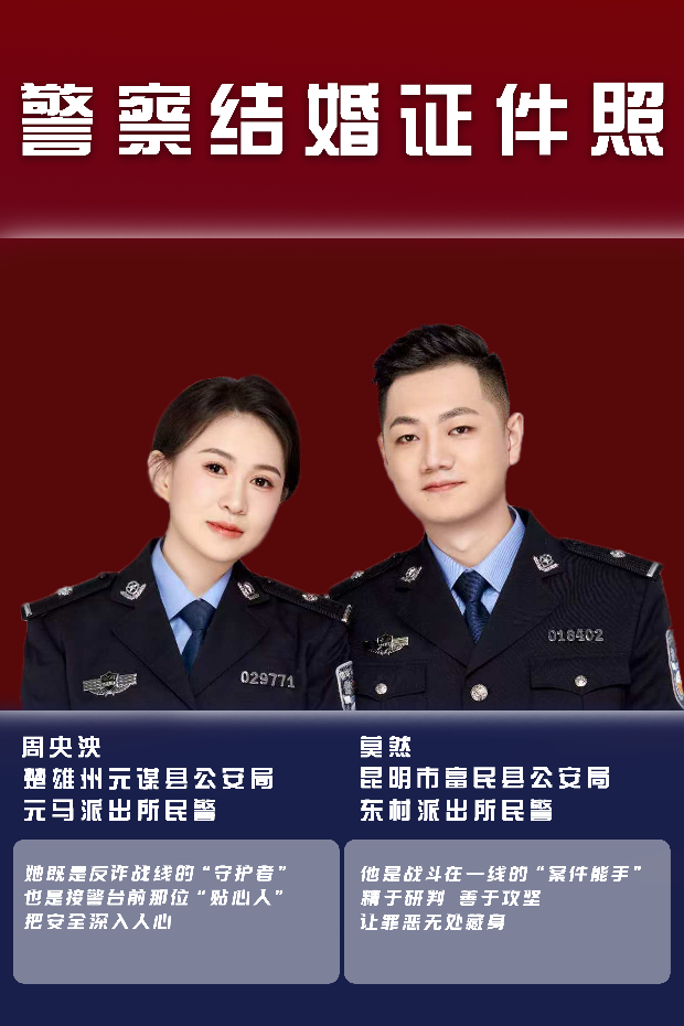 “男同志向女同志靠近点,女同志向男同志靠近点……”七夕来临,云南警方公开发布一组警察结婚证件照。爱在左,使命在右,穿上警服,他们守护山河无恙;脱下警服,他们护彼此一生时光。双警家庭、双份付出、双重责任,祝愿,是爱人亦是战友的他们,未来的路,一起加油!
