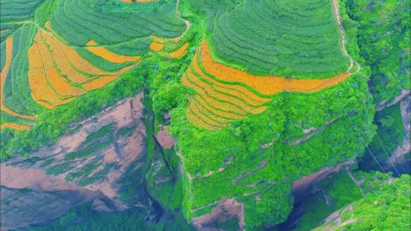 雄浑的裂谷与娇艳的万寿菊