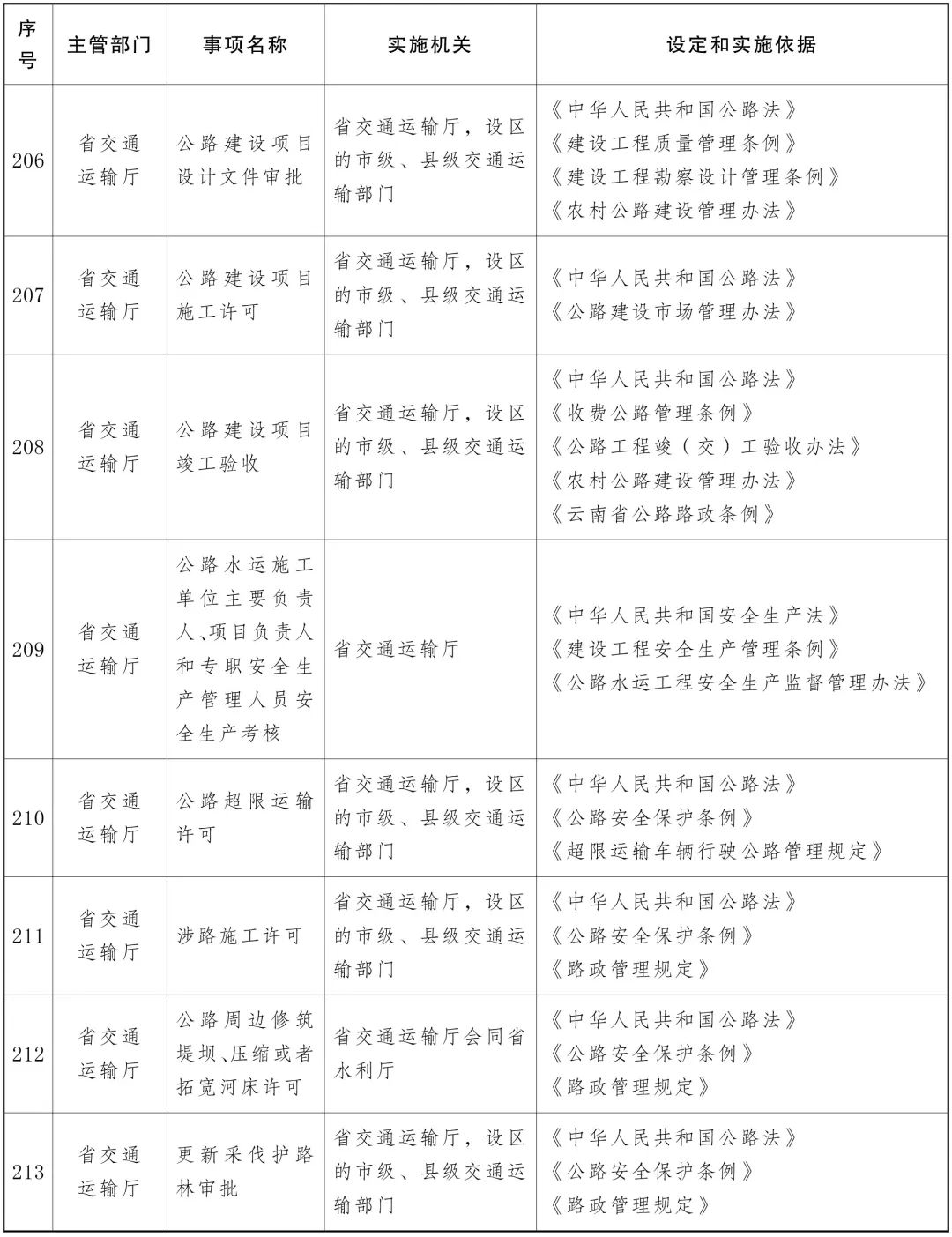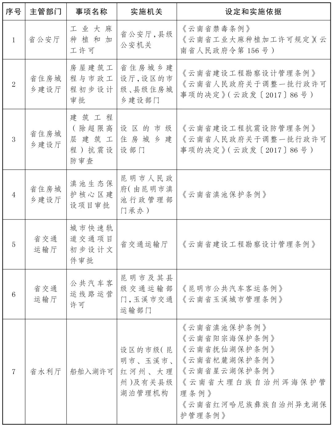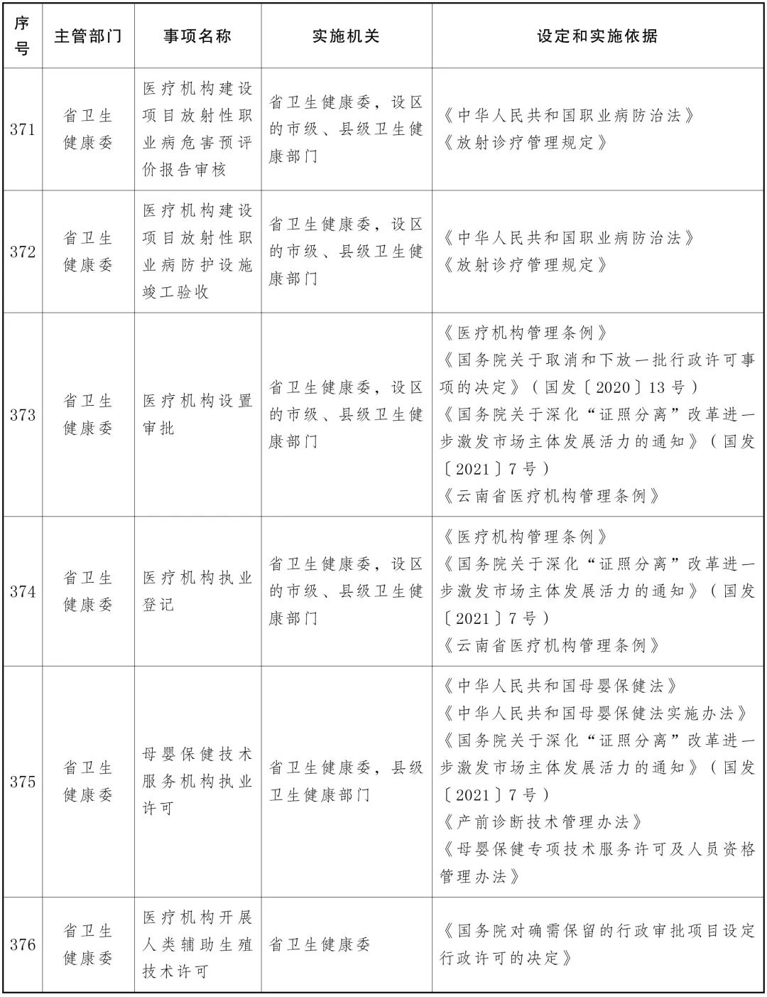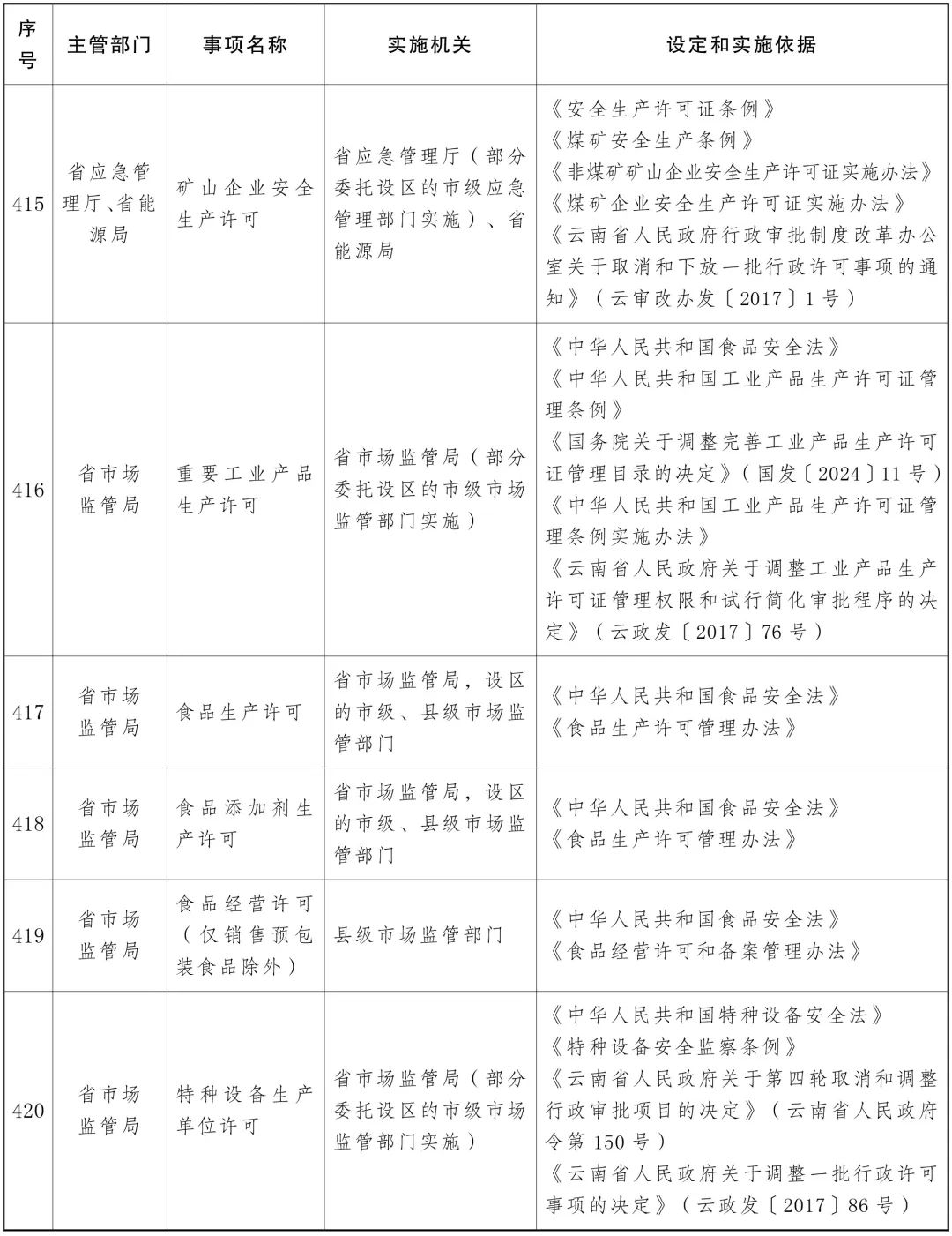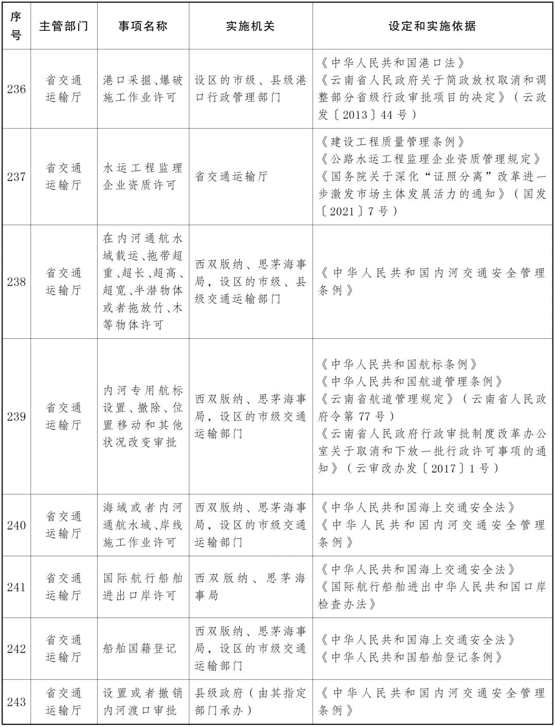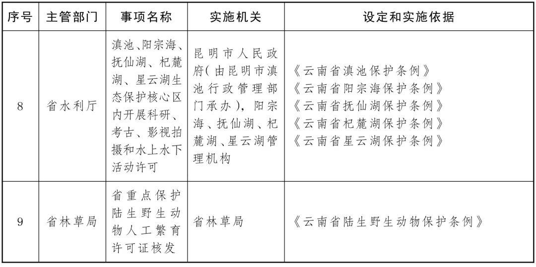二、云南省地方性法规、省人民政府规章设定的行政许可事项(共9项)