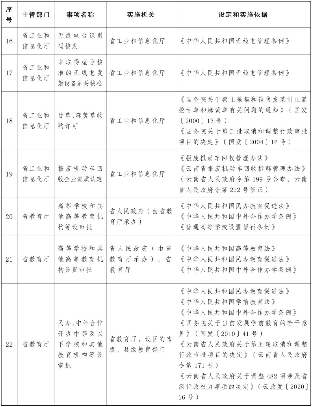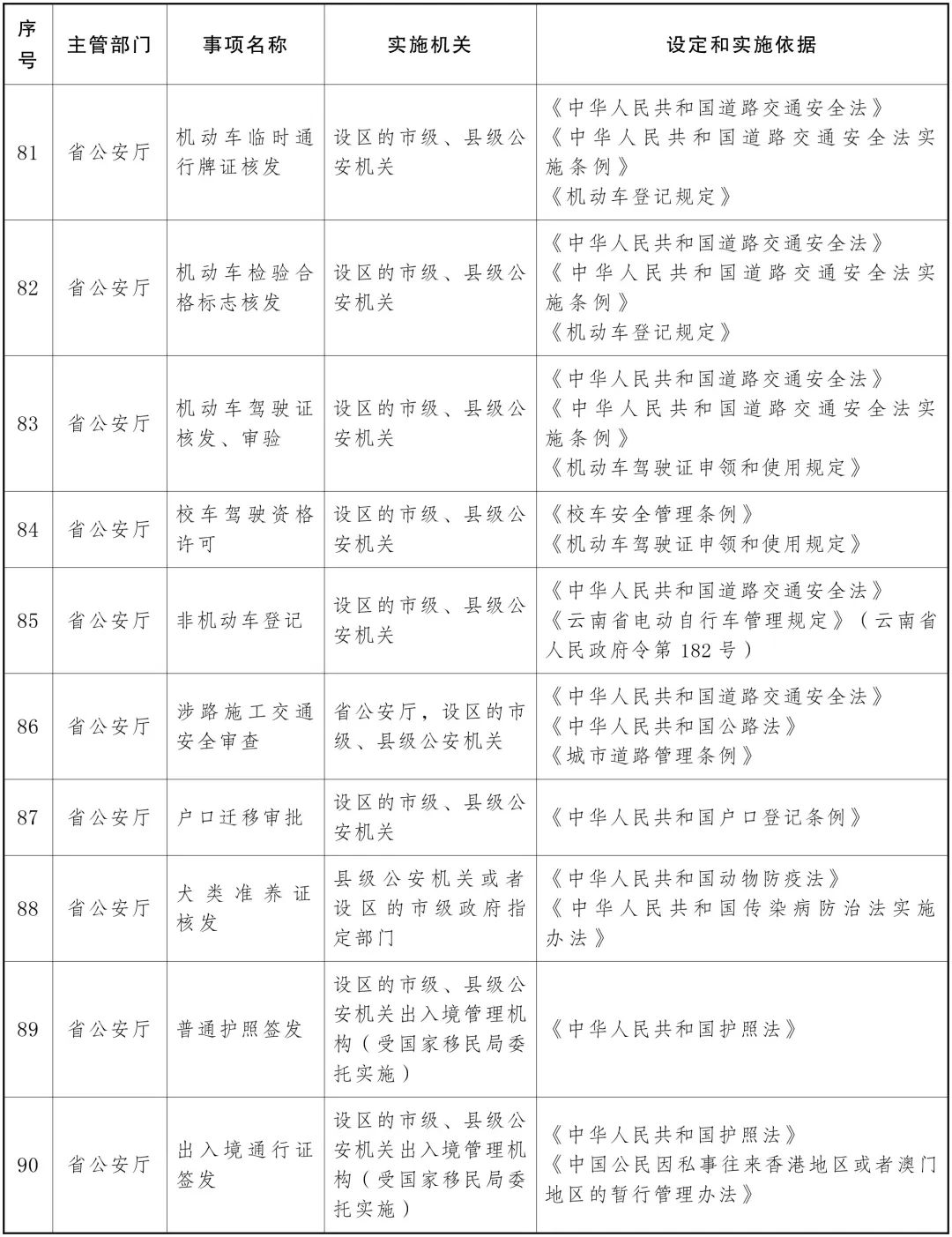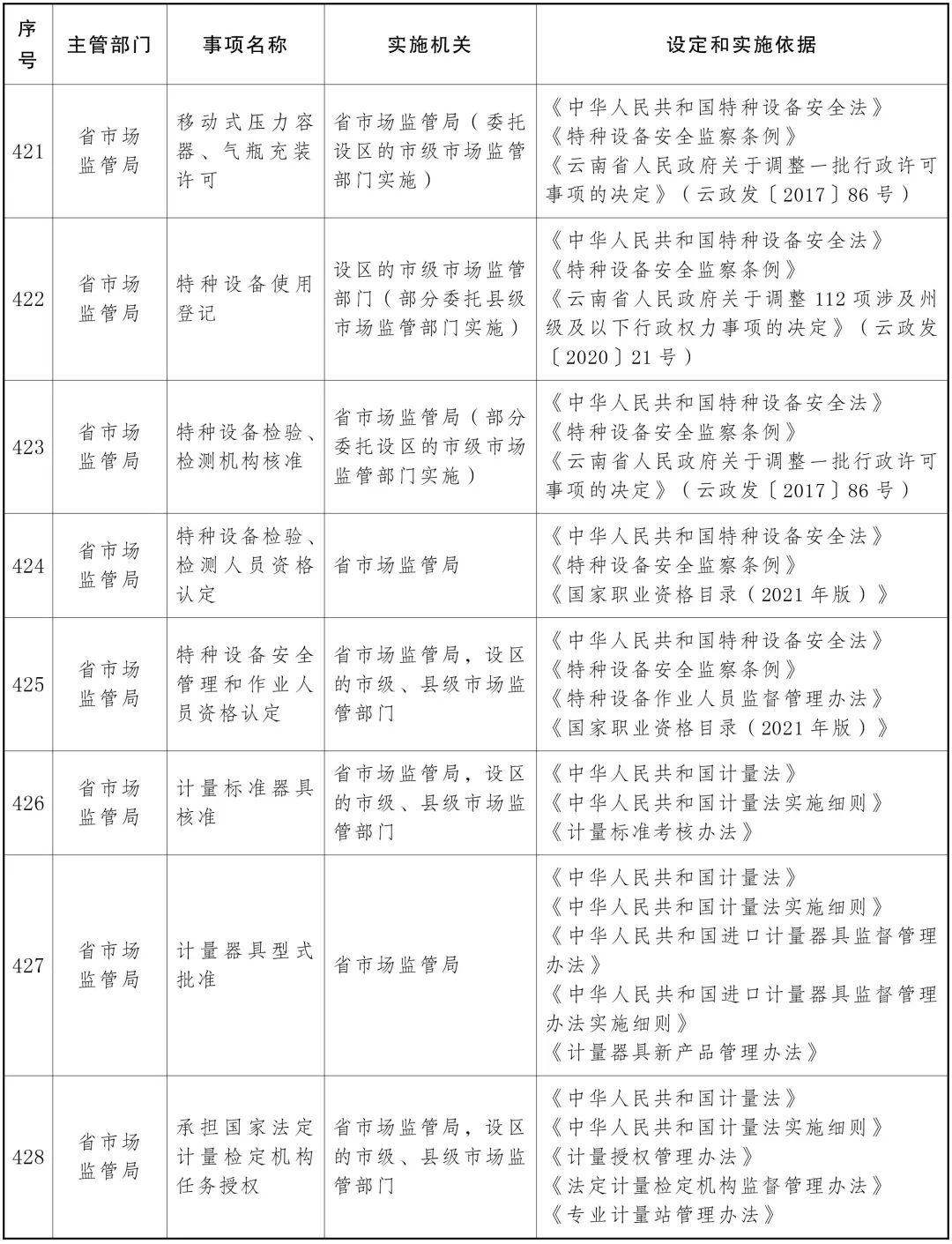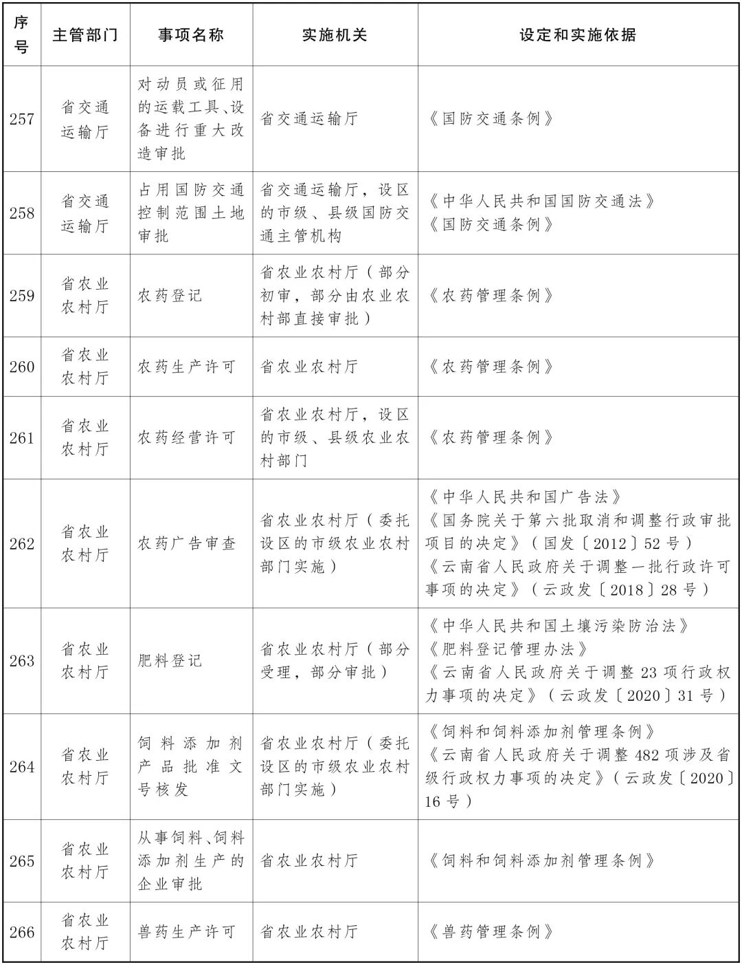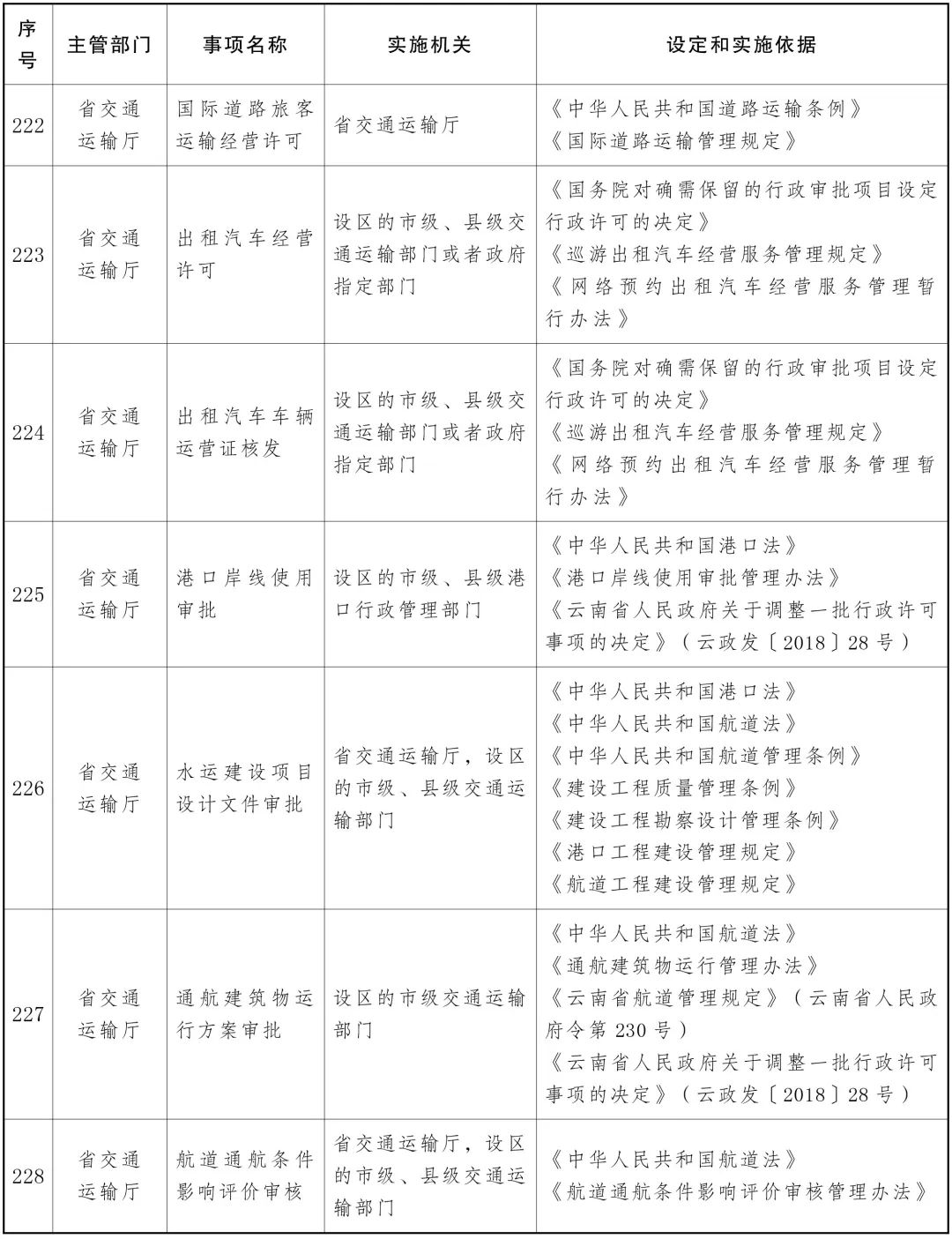 二、云南省地方性法规、省人民政府规章设定的行政许可事项(共9项)