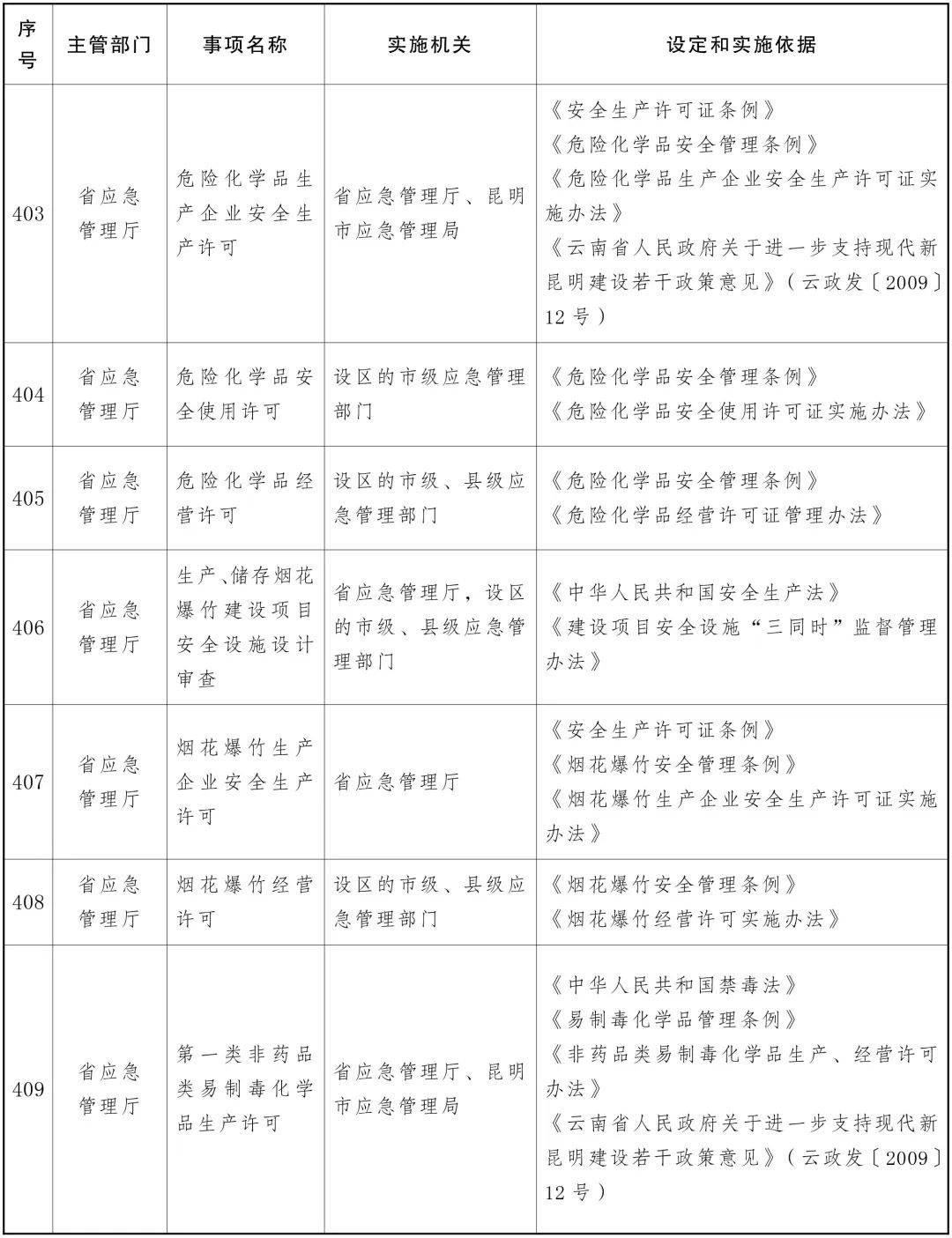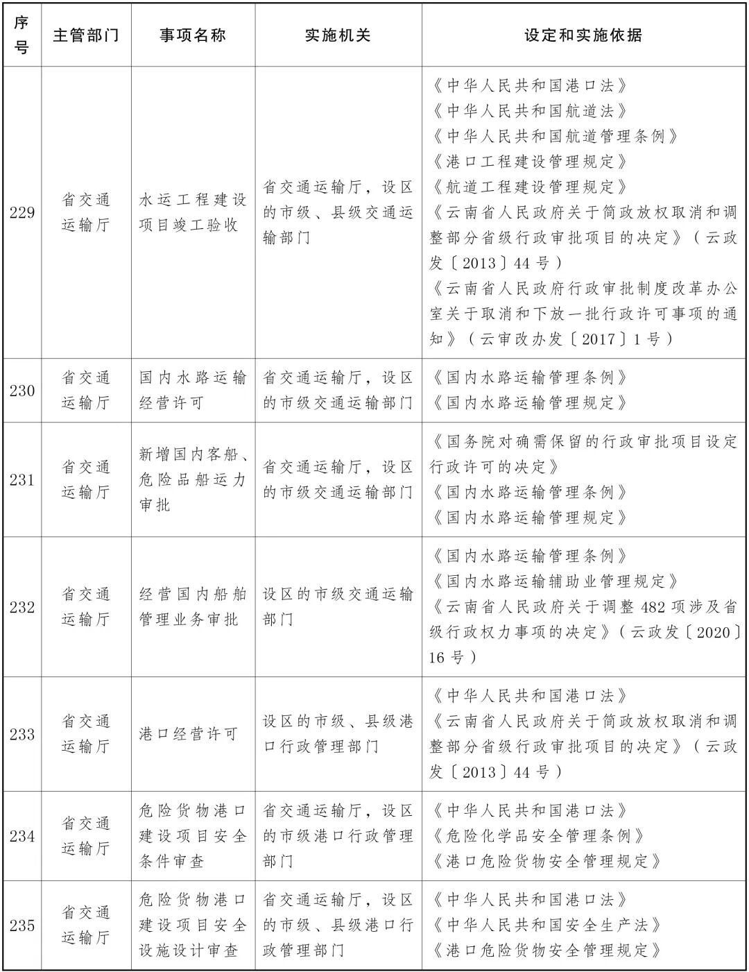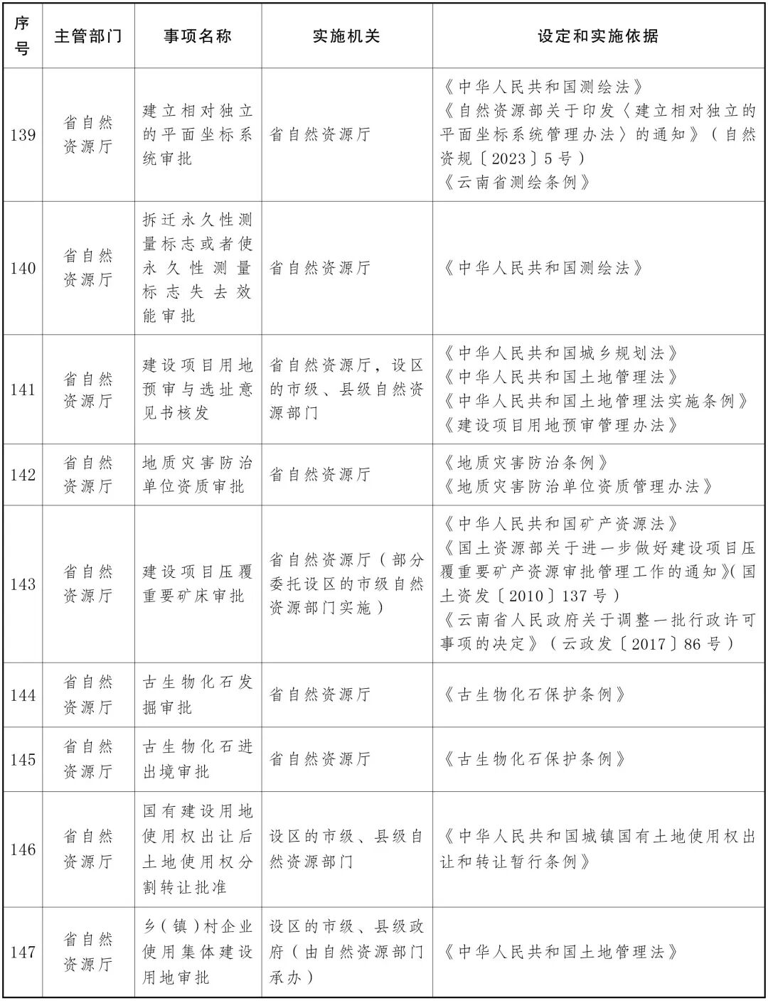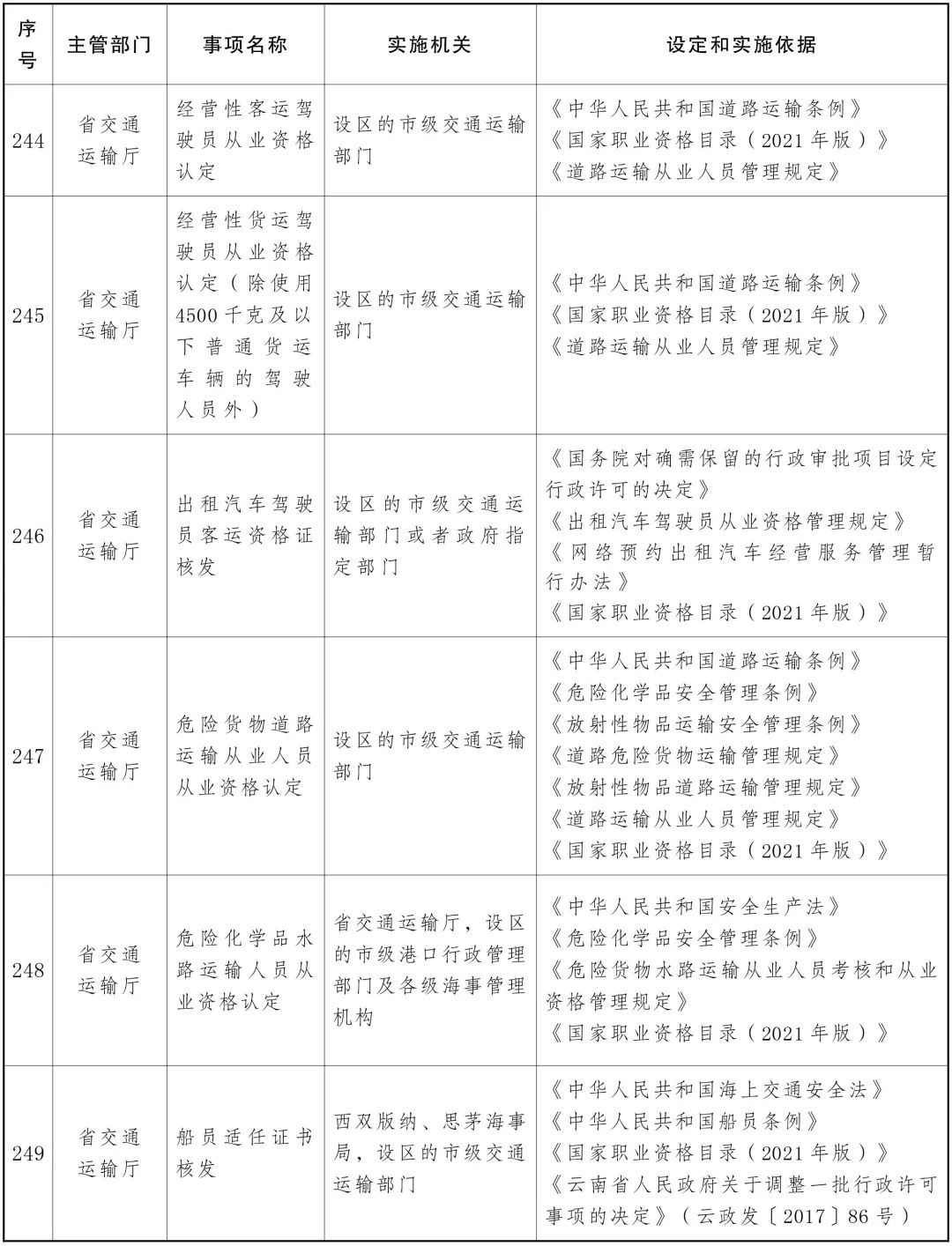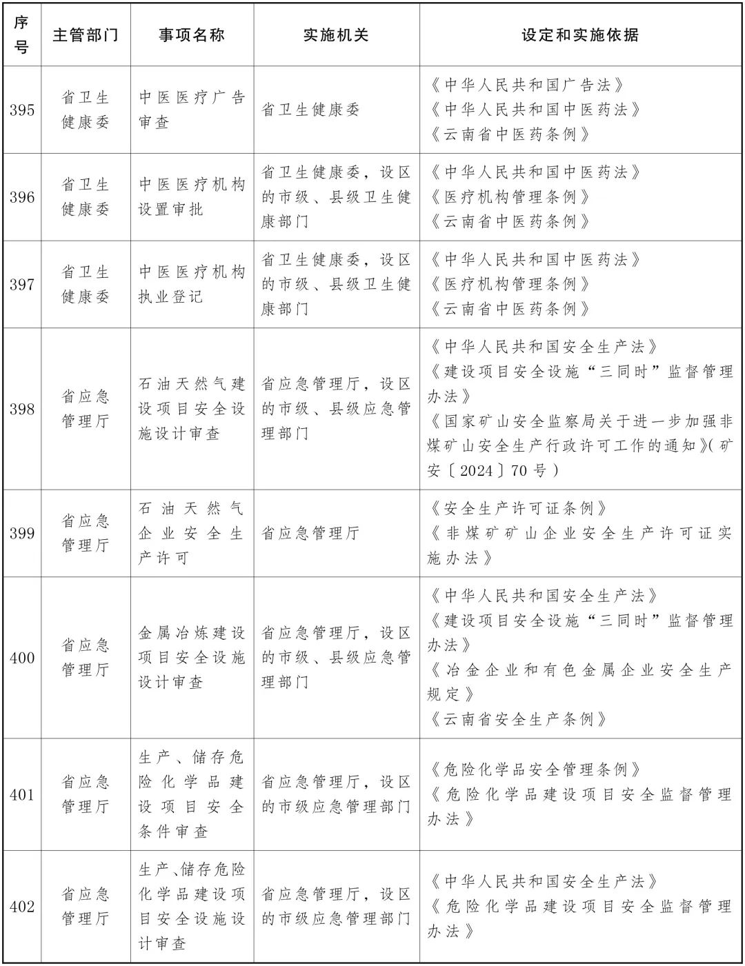 二、云南省地方性法规、省人民政府规章设定的行政许可事项(共9项)