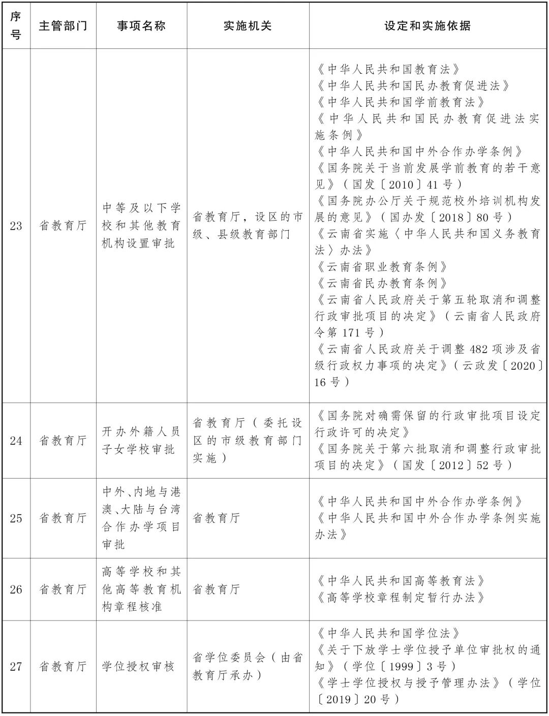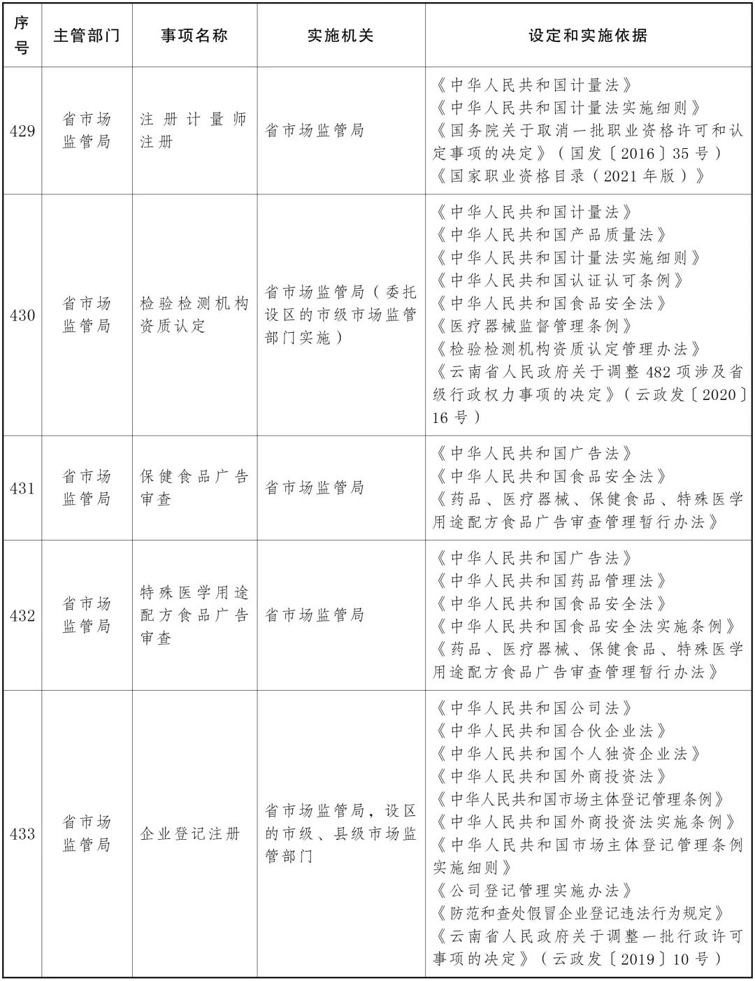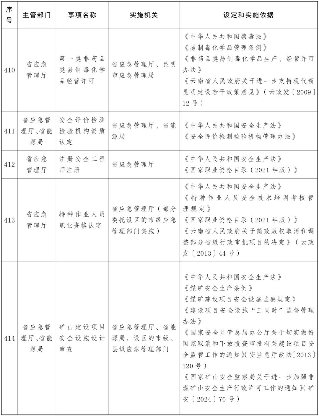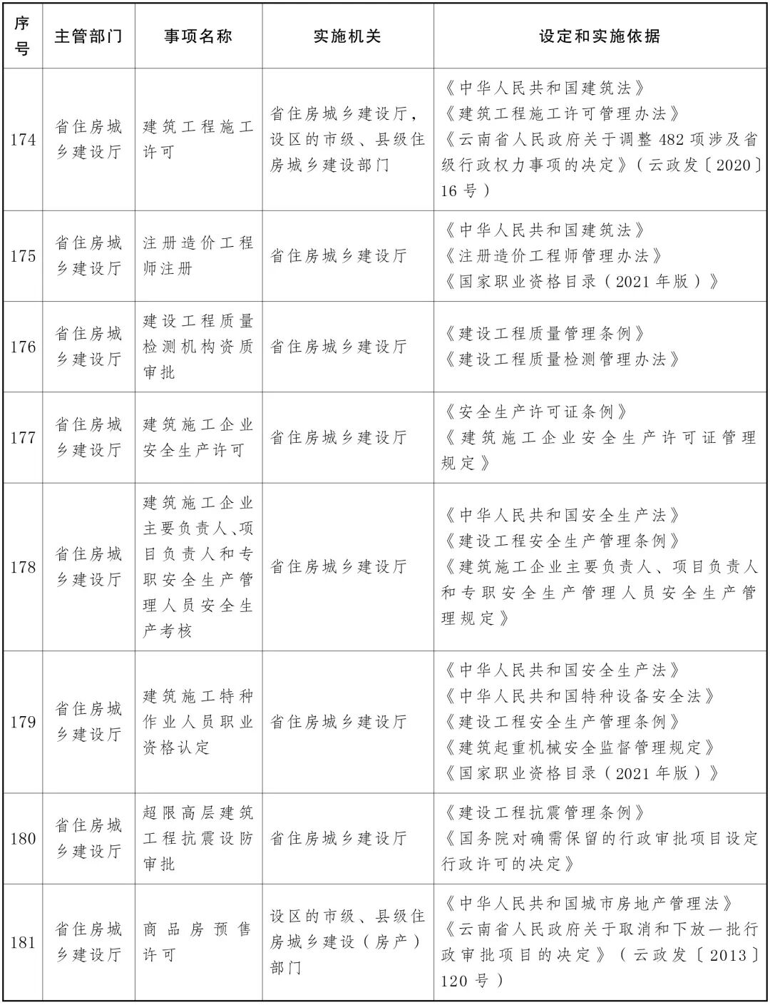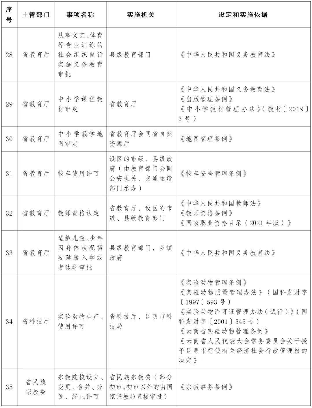 二、云南省地方性法规、省人民政府规章设定的行政许可事项(共9项)