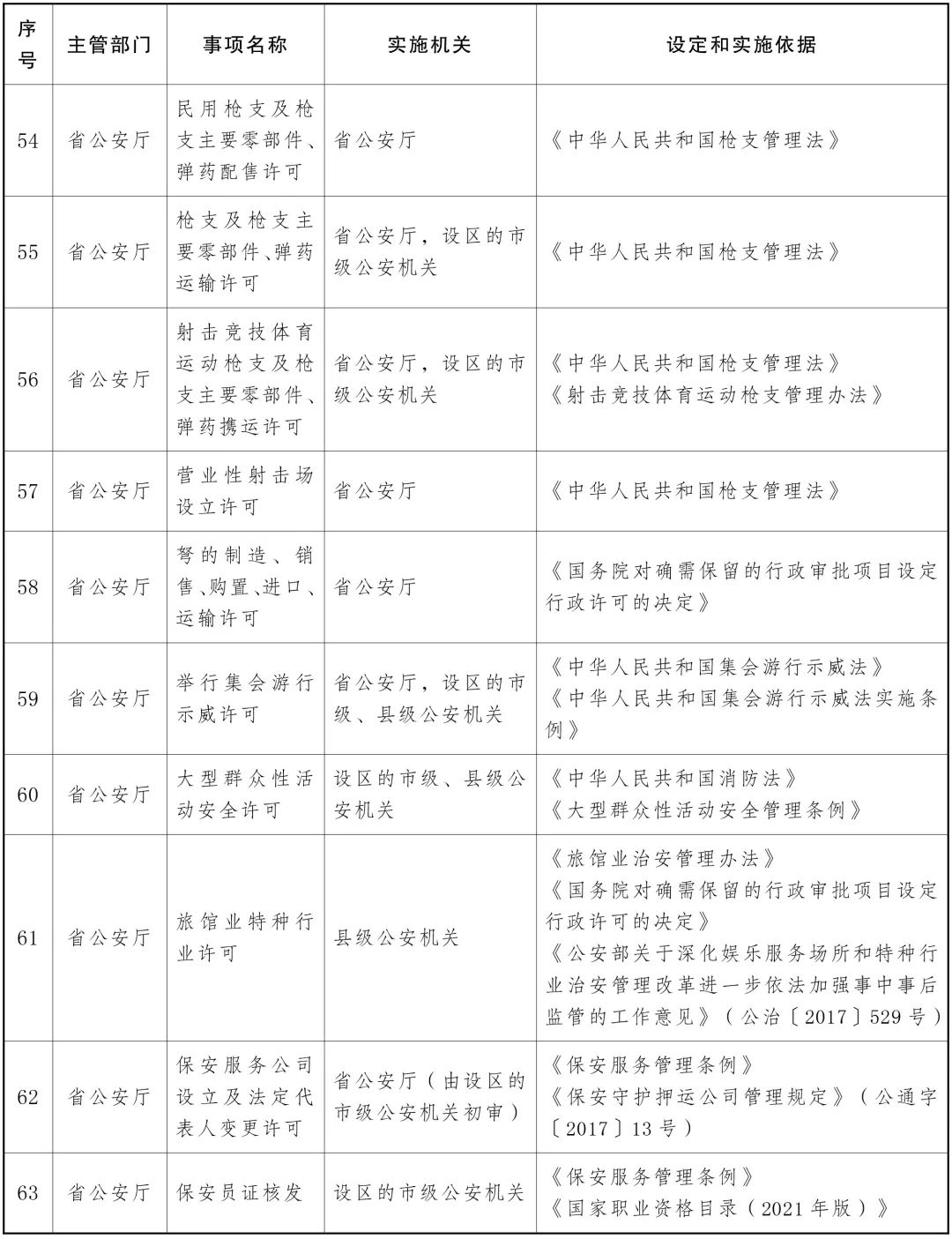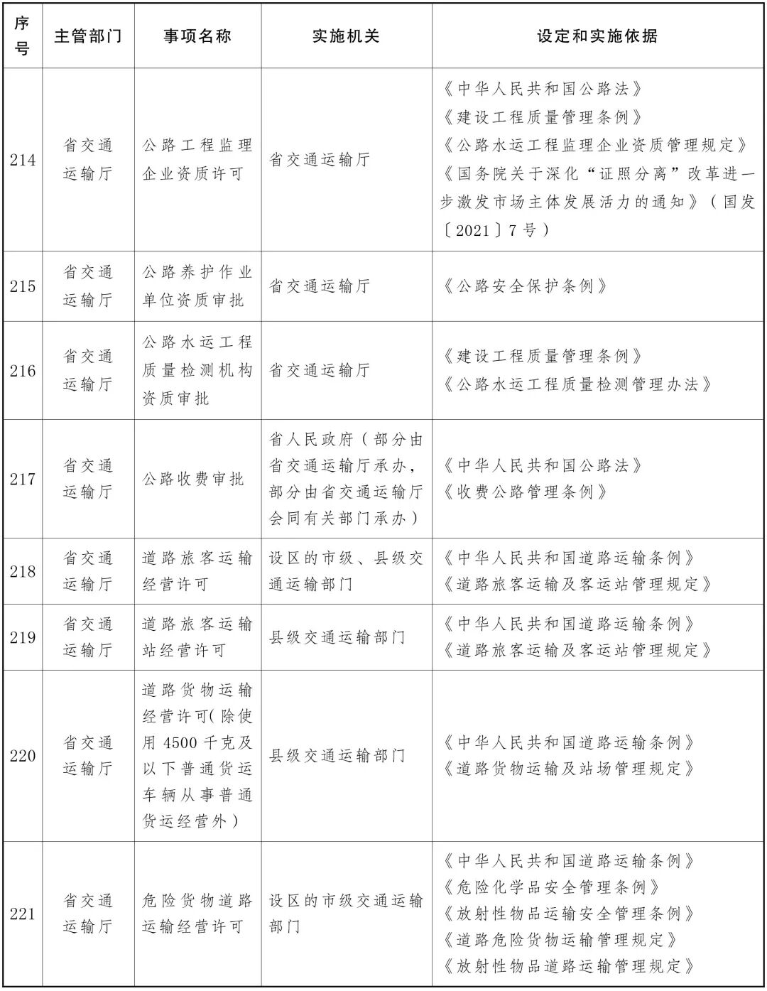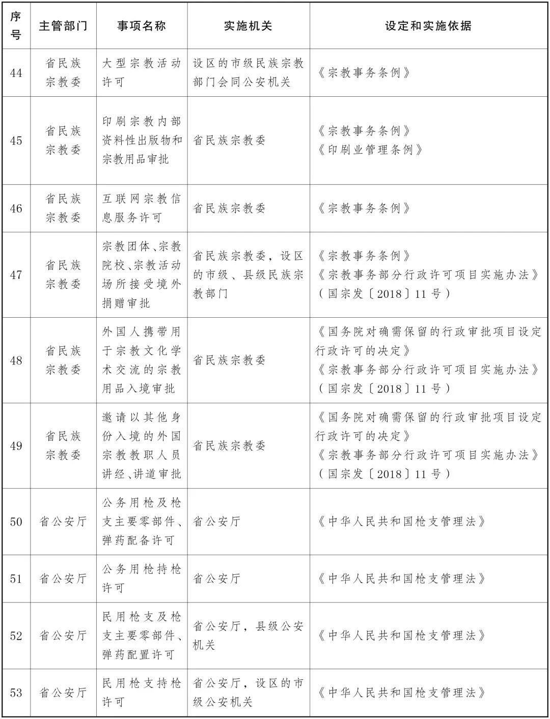 五、调整许可事项设定和实施依据。调整49项许可事项的设定和实施依据。