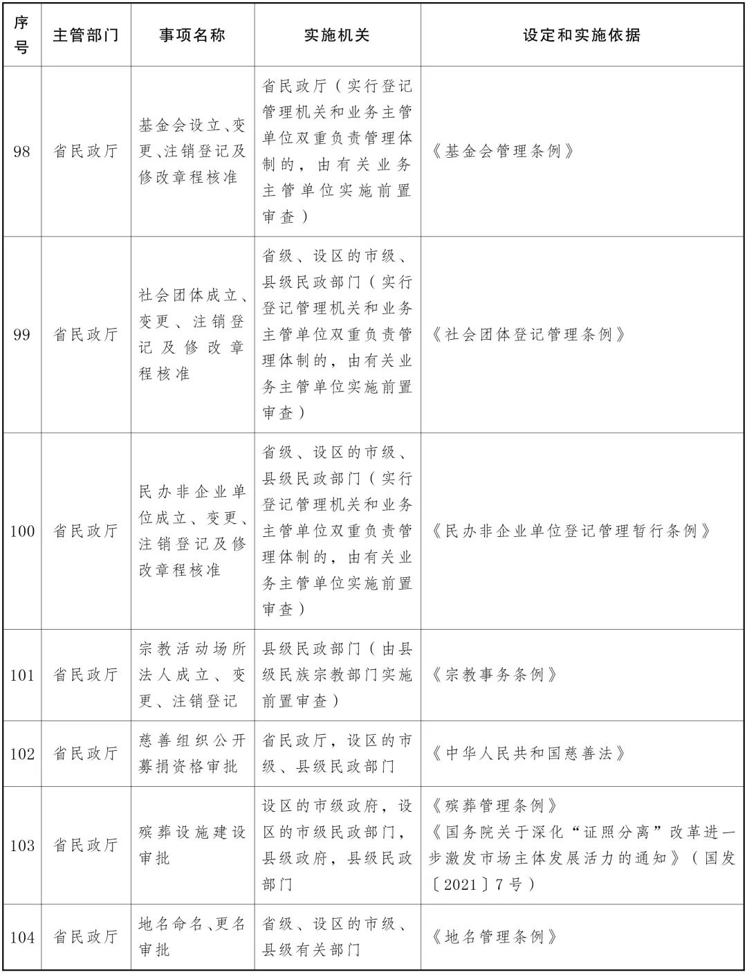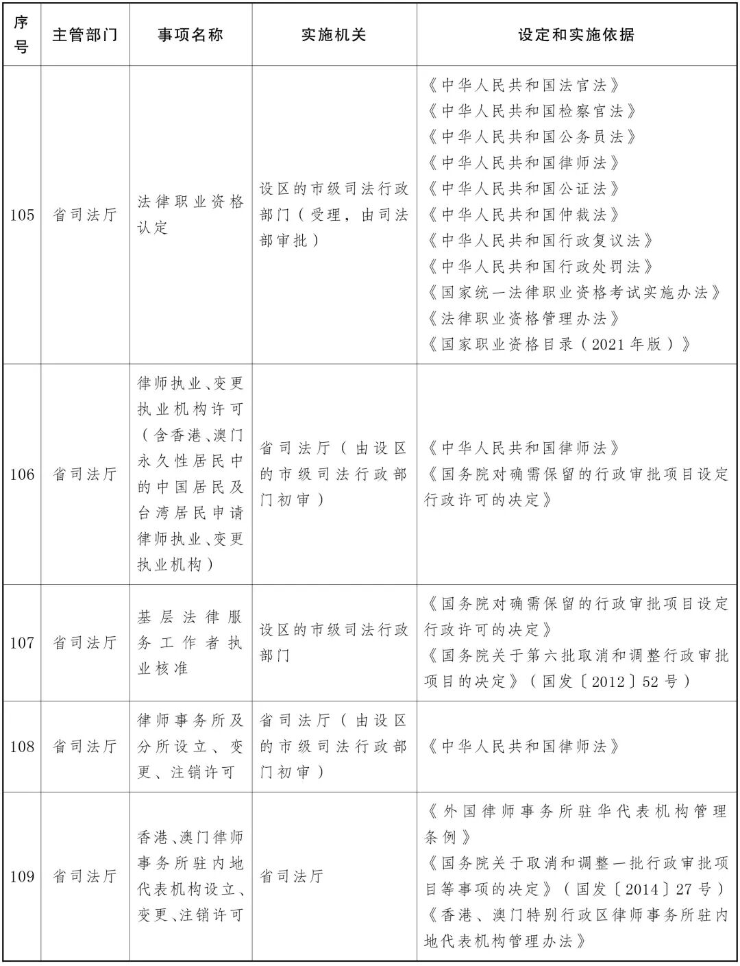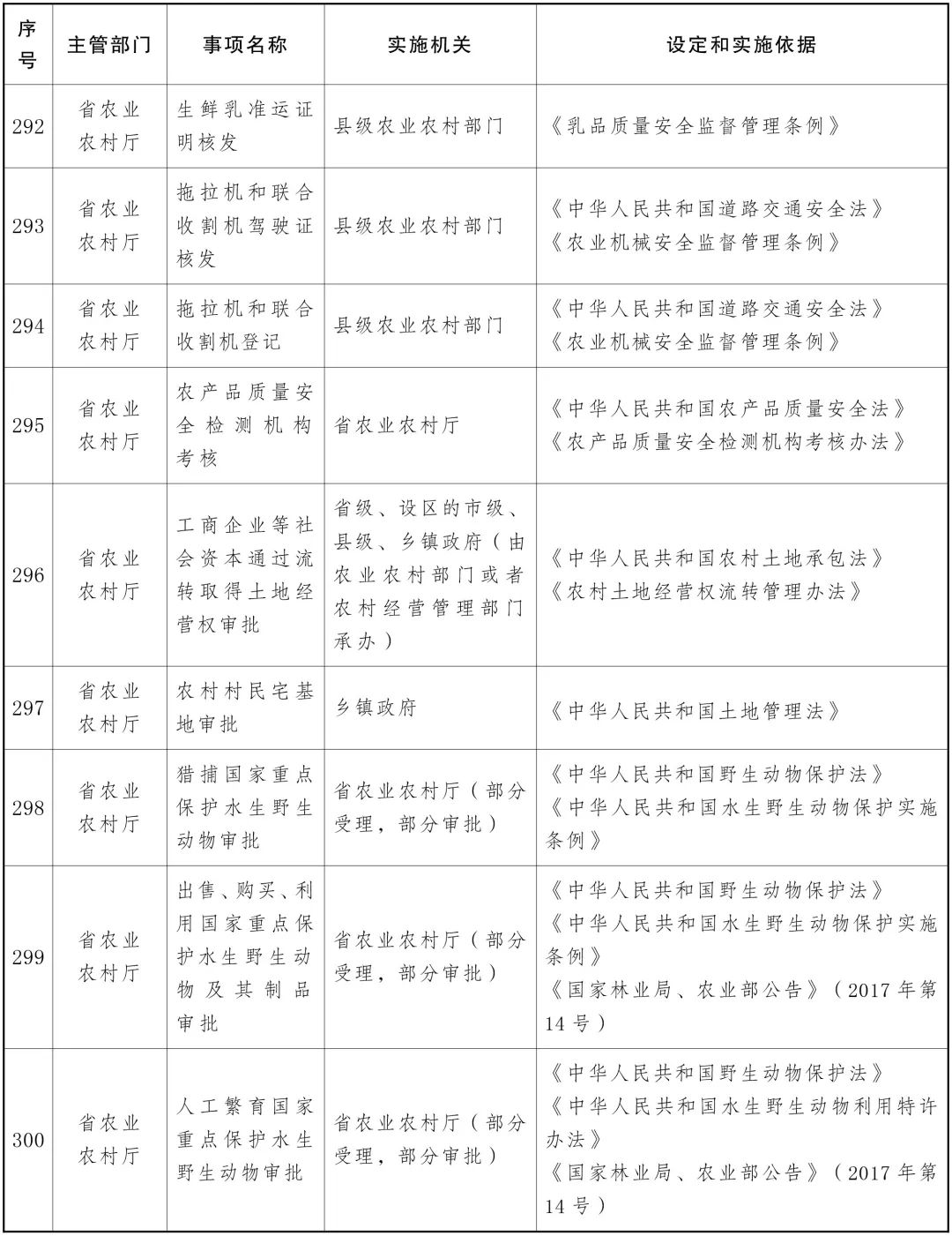 五、调整许可事项设定和实施依据。调整49项许可事项的设定和实施依据。