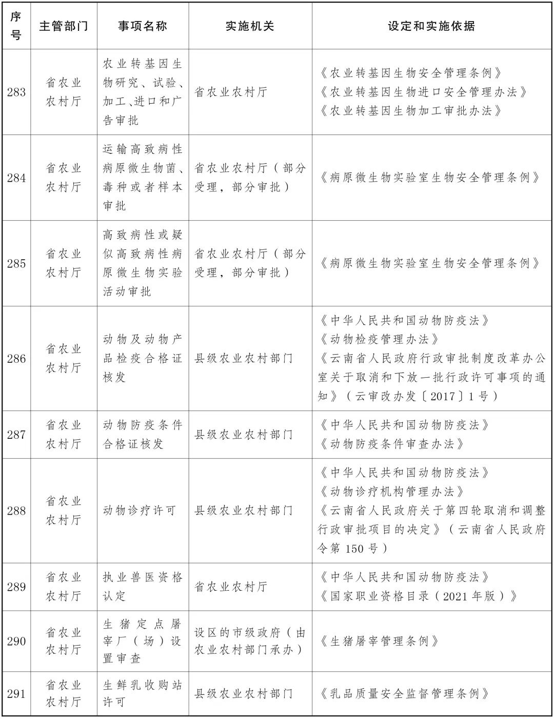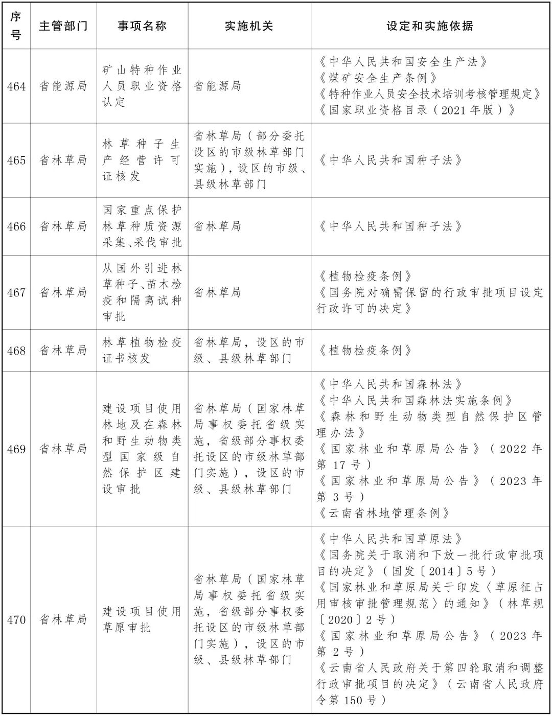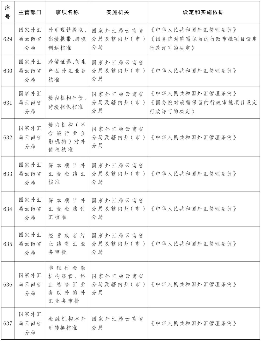一、承接法律、行政法规、国务院决定设定的在云南省实施的行政许可事项(共664项)