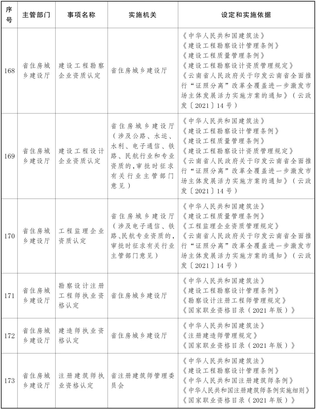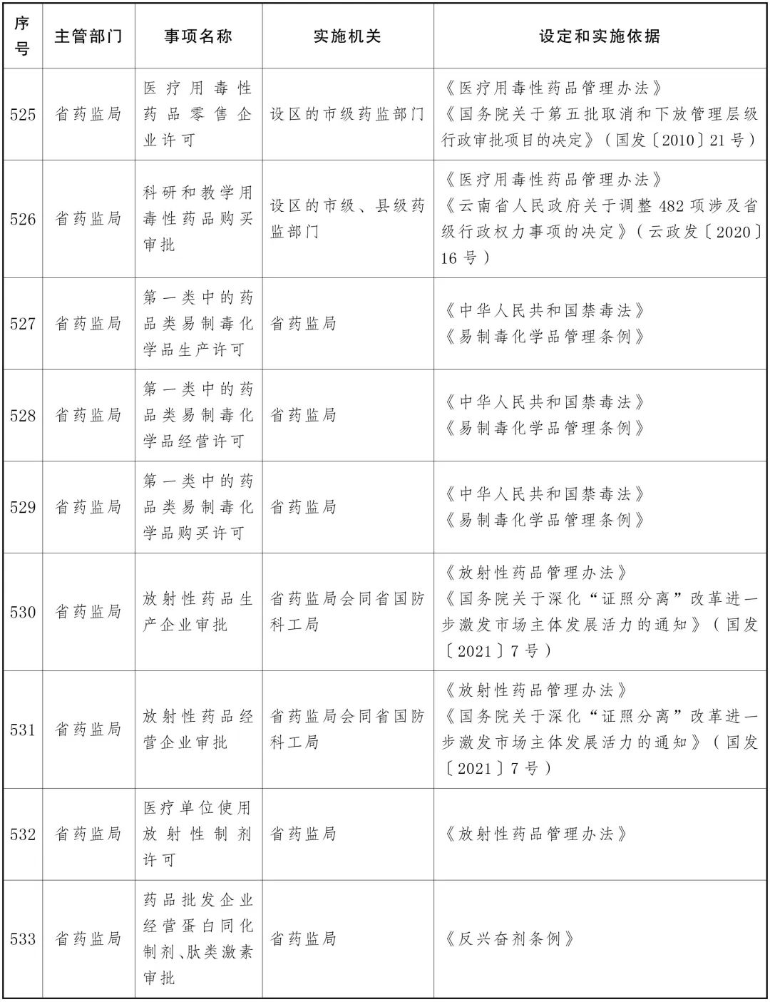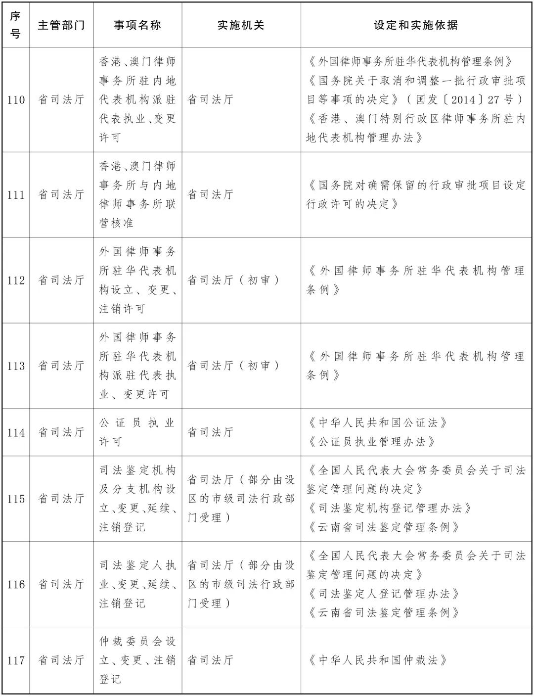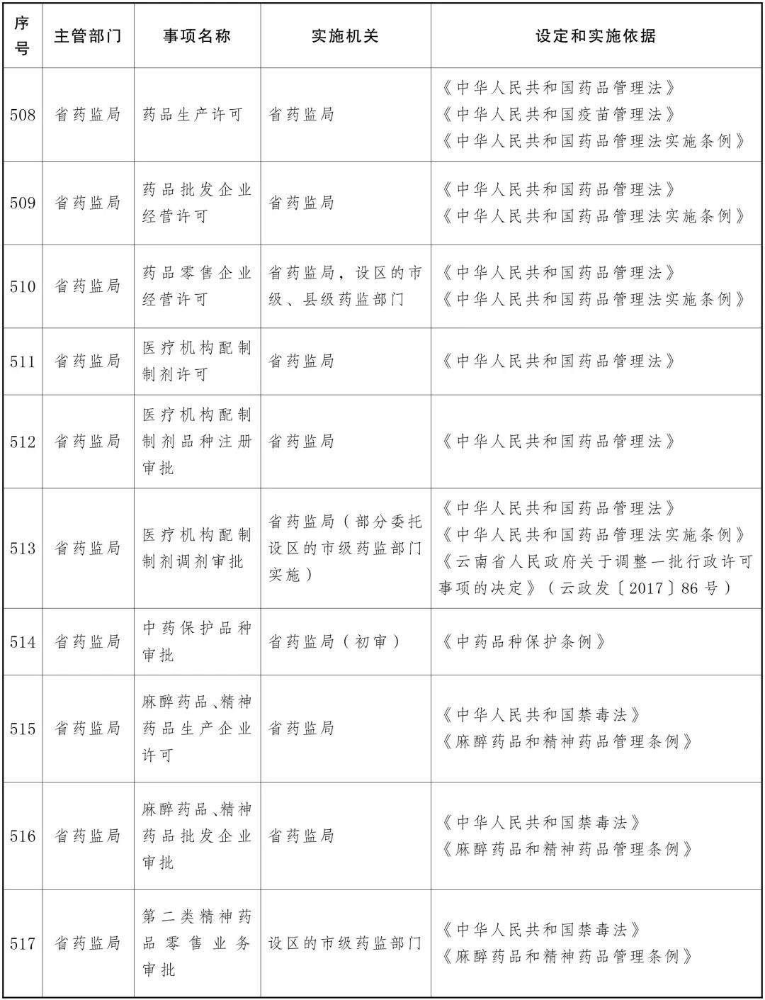 一、承接法律、行政法规、国务院决定设定的在云南省实施的行政许可事项(共664项)