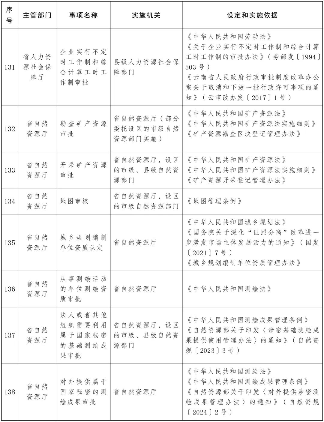 按照行政许可事项清单管理工作机制,根据国务院办公厅公布的《法律、行政法规、国务院决定设定的行政许可事项清单(2025年5月23日)》(以下简称中央层面清单),省政府办公厅会同各级各有关部门结合法律法规立改废释和机构改革等情况,修订形成《云南省行政许可事项清单(2025年版)》,经省人民政府同意,现予公布。修订情况如下: