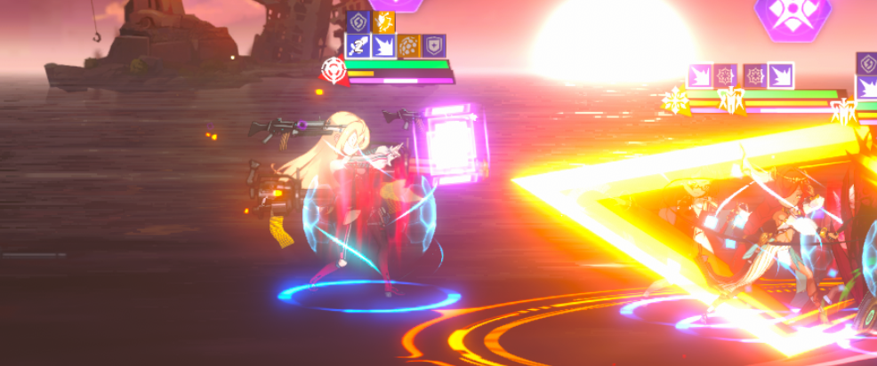 然后是关键的来看技能效果,普攻持枪对前方持续扫射,造成总计攻击力*448%的物理伤害,持续型普攻的优势在于不容易空伤害,有时候单次高伤普攻在对于杂鱼敌人的时候容易溢出,当然劣势在于可能看起来会有点刮痧。