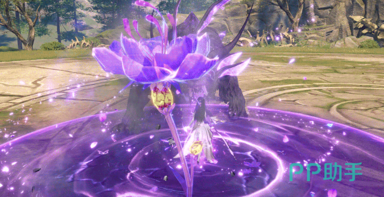 叶原的普攻会吹响笛子引导花香来进行攻击,对命中目标造成少量伤害,她的“绮罗花开”会在进入战斗时立刻在脚下召唤出幽香绮罗花,她的“幽香曼舞阵”会在花的所在位置形成一个花香领域,领域会持续恢复里面角色的生命值,并在释放时驱散自身负面状态。