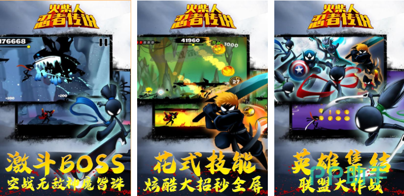 本作定位为火柴人风格的动作RPG,强调技能多样性与战局策略性。每个忍者英雄配备三段式技能树,含位移技、范围控场与全屏终结技,BOSS战设有阶段转换机制与弱点破防提示。打击反馈采用拟真布娃娃物理与帧动画强化系统,受击反馈伴随屏幕震动与粒子爆散,配合高饱和度色彩渲染,营造出富有张力的近身搏杀氛围。