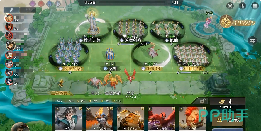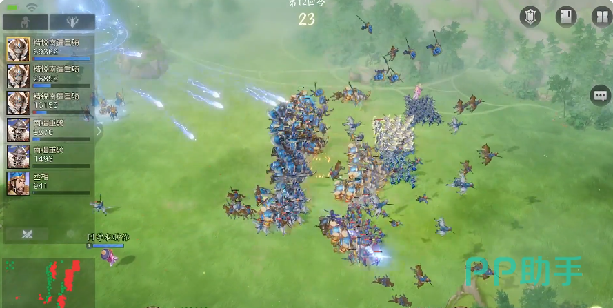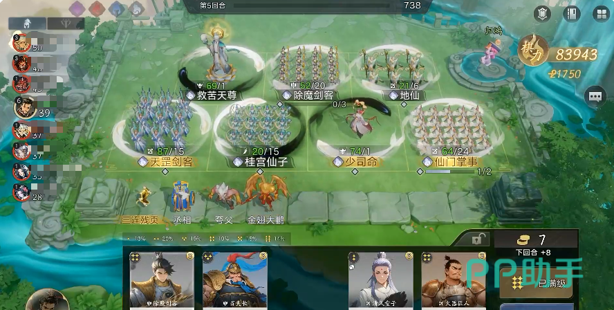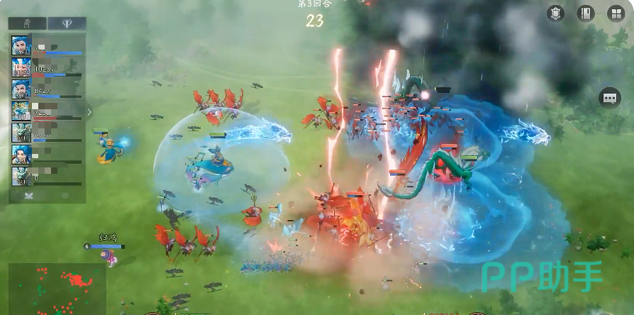 每一次对局中,大家对部从进行部署,主要就是双方部从进行对战,若己方部从成功将敌方部从消灭,在取胜后就能削减对手一半血量,反之己方血量也会被对手削减,一旦血量清零,大家就会在本场对局中出局,血量博弈就是战斗系统中最底层的逻辑;