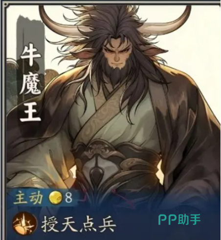 先看牛魔王,他是天书流派的核心角色,他的被动,在每次升级天书时,能使全体部队数量+1,同时将“战吼”激活,会让所有部队入场时触发额外效果,将会让他自己额外展开1次,主动技立即结算当前已经解锁的所有天书升级效果,大幅度提升节奏掌控力,还有爆发上限。