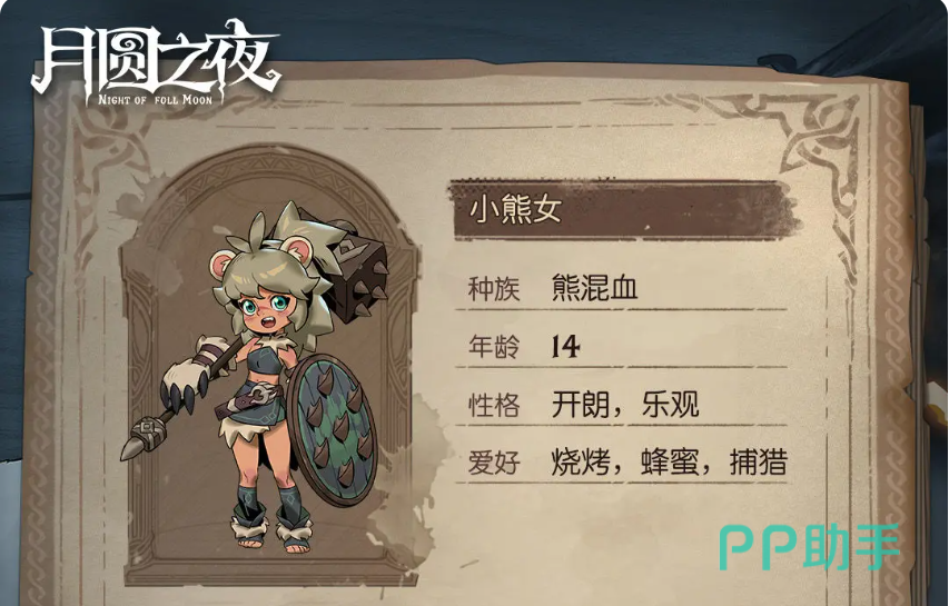 小熊女:年纪很小,是在冒险家联盟认识的朋友,有可观直爽的性格,力气就和熊一般大,她非常愿意与玩家一同前往冒险,这样等爸爸彻底好起来之后,她就无需在承担联盟的事情,又可以一起去森林冒险烧烤;她的技能可施加格挡保护伙伴,使用尖刺还击攻击的对手。