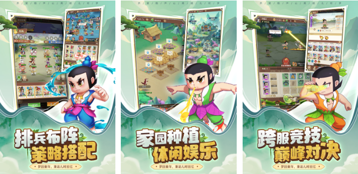 这是一款融合轻度模拟经营与策略布阵玩法的竖屏回合制手游。玩家可在主城中开垦农田、培育灵药,获取战斗资源;战斗采用上帝视角五人小队协同作战模式,支持跨服天梯排名赛。技能特效采用粒子动态渲染技术,角色动作帧率达60fps,场景细节包含青石台阶、藤蔓缠绕柱体等上美影标志性视觉符号,整体观感兼具怀旧气息与现代表现力。