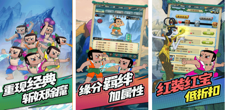 该作是专为离线场景优化的单机向放置类冒险游戏。主线剧情完整复刻1986年版动画全部13集内容,关键节点设置语音旁白与手绘插画过渡。战斗采用全自动挂机机制,但引入“缘分系统”——当特定葫芦娃同时出战时,自动激活属性加成(如大娃+二娃提升暴击率)。装备系统含红装、宝石两大模块,支持形象切换与数值叠加,全程无需联网即可体验完整葫芦娃世界。