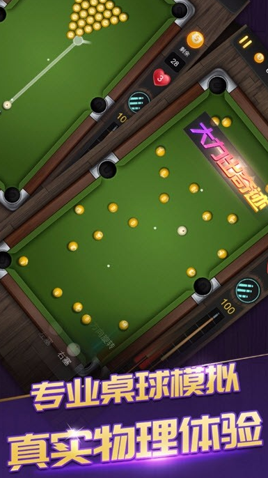 基于真实台球物理引擎开发,支持多种对战模式:双人组队闯关、本地分屏切磋、限时挑战赛等。球杆角度、击球力度、旋转控制均可精细调节,碰撞反馈真实,走位计算需结合几何直觉与经验判断。画面采用高清渲染,球台质感、光影变化与音效细节强化沉浸感,兼顾休闲娱乐与技巧成长需求。