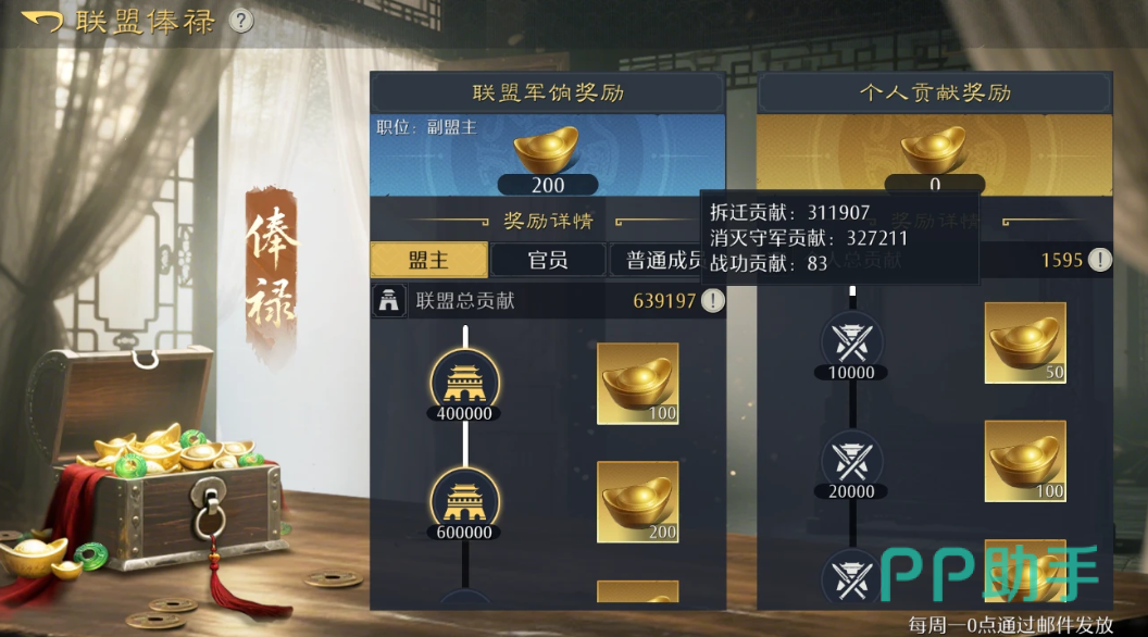 联盟的资源发放以时间周期为主,每一周都会发放基础的物资补给。其次就是根据每个玩家的贡献程度发放专属的福利。平时小伙伴们可以通过完成日常任务以及资源捐献和协同作战积累自己的贡献值,这样就可以通过联盟获取比较稀有的道具以及一些特殊奖励了。