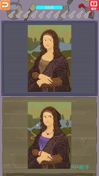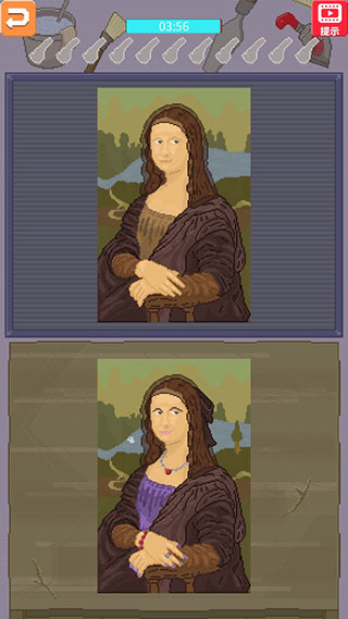 以世界名画修复为叙事主线,还原《蒙娜丽莎》《星月夜》等经典原作的材质老化特征与历史损伤痕迹。每幅待修复作品配有专属考据档案,含创作背景、颜料成分分析及修复技术说明。玩家需依次完成除尘、补底、补色、罩染四步工序,操作精度影响最终成像光泽度与细节还原率,修复成果可陈列于虚拟展厅并接受全球玩家评分。
