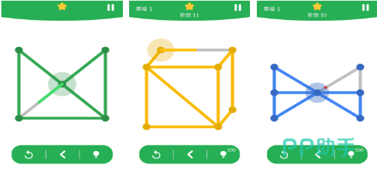源自图论经典问题的移动端演绎。要求用户以连续不中断、不重复经过任一节点的方式,用单线连接全部散点。初期关卡仅含少量锚点,后期演变为密集拓扑结构,需系统性分析起点/终点奇偶性及连通路径,有效锤炼抽象建模与递推验证能力。