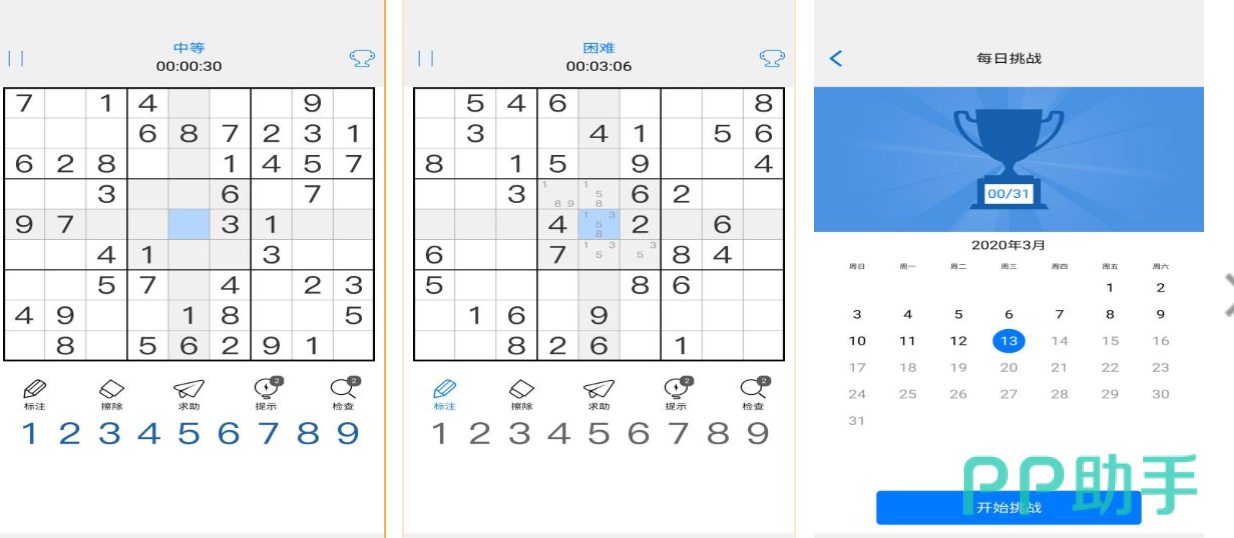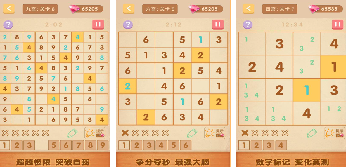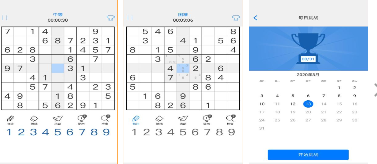 本作采用阶梯式难度设计,关卡由入门级逐步过渡至专家级,适配新手到资深玩家的全阶段成长路径。每局开始前清晰标注难度标识,便于自主选择。功能上支持行列高亮、重复数字即时校验,辅助逻辑推演更高效。随着关卡深入,初始提示数持续减少,对候选数分析与隐性排除能力提出更高要求。界面极简无广告干扰,有助于维持长时间稳定专注状态。