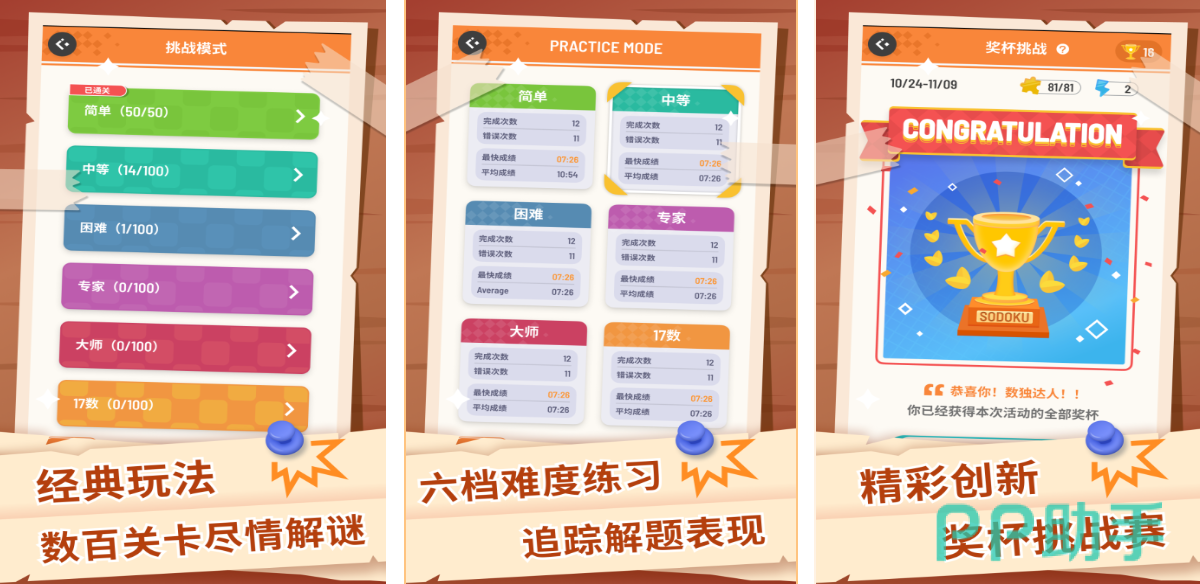 该游戏整合多样化棋盘规格,除标准9×9外,还提供更大尺寸变体,满足不同推理节奏偏好。多主题界面可自由切换,缓解视觉疲劳,延长单次使用时长。题目均由确定性算法生成,确保每题有且仅有一个逻辑解,杜绝歧义。自动存档机制完善,支持随时中断并精准续玩,契合通勤、午休等碎片化场景下的脑力训练需求。