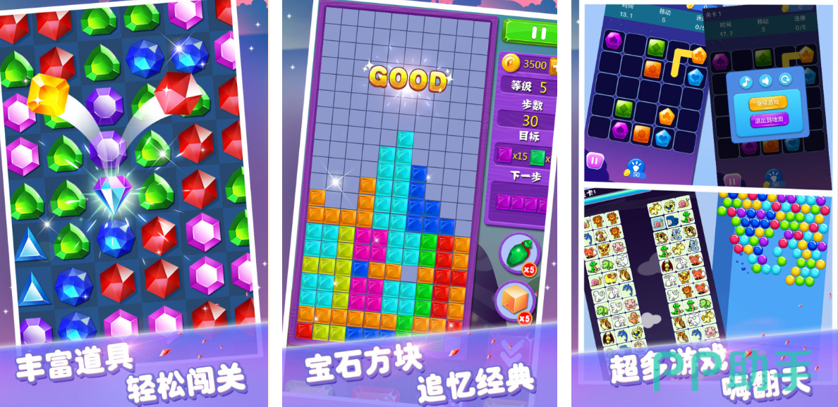 基于经典宝石消除机制开发,核心目标围绕步数限制下的多重任务达成,包括但不限于清除冰块、打破锁链、收集指定宝石类型等。内置炸弹宝石(爆炸清除周边)、闪电宝石(纵向/横向清屏)、彩虹宝石(替换任意单色)等功能型元素,支持玩家在关键节点实施精准干预。关卡布局涵盖基础网格排列、嵌套式复合结构及动态生成区域,高等级关卡显著增加宝石颜色种类(达7种以上)与随机排列密度,倒逼玩家建立全局视野与连锁效应预演能力。积分结算综合考量消除数量、连击次数、特殊道具触发频次等维度,兼顾反应速度与逻辑推演双重能力训练。
