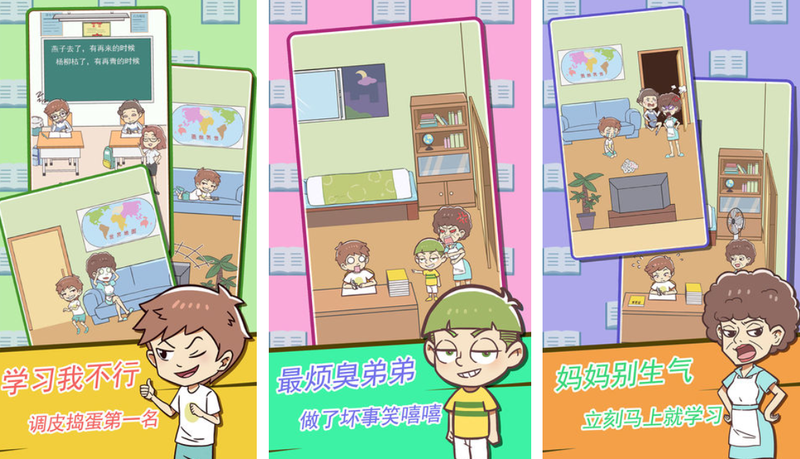 本作融合解谜与家庭关系模拟机制,构建出极具张力的亲子博弈场域。玩家饰演一名逻辑缜密但抗拒填鸭式教育的少年,在母亲布置的各类学习任务中寻找系统漏洞、设计迂回路径、触发意外事件链。游戏共设48个独立谜题关卡,每个关卡对应不同高压情境(如突击检查、限时背诵、错题重做),需结合物理机关、时间差操作与角色状态切换完成目标。