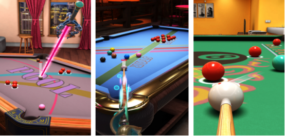 严格遵循标准台球桌长宽比与库边高度参数,桌面材质与色彩支持多套主题切换。设有世界冠军挑战副本,玩家可逐级击败各阶段顶尖AI选手,解锁成就与专属装备。球杆与球组种类丰富,支持个性化搭配。达成一杆清台条件(即不犯规前提下将所有目标球合法入袋)将触发专属称号系统,彰显技术实力。