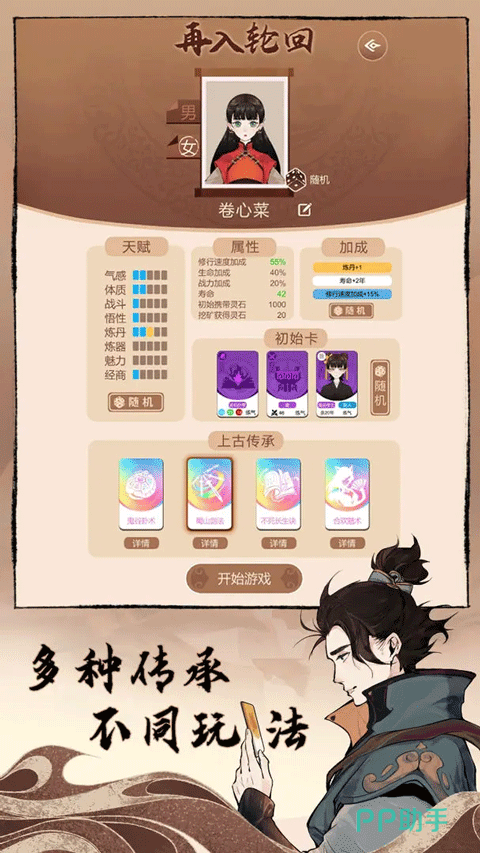 摒弃固定功法模板,所有心法、神通、法宝均需通过角色长期感悟逐步解锁。创新引入卡包养成机制,含基础筑基卡、渡劫特典卡、宗门传承卡等十余类稀有卡池;每张卡片附带独立战斗逻辑,部分心法可改变技能判定规则或触发环境联动效果;宗门系统支持玩家竞选大长老,统筹弟子培养、资源分配与门派任务调度。