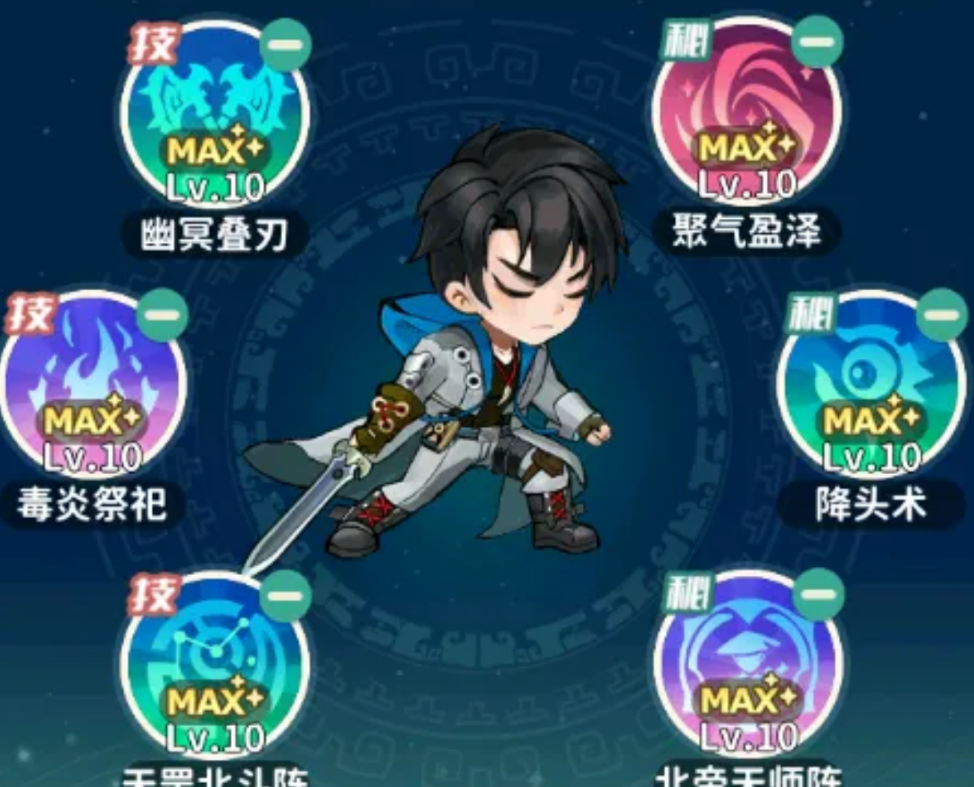 然后来看淘沙,这是以持续性伤害为主的输出类型职业,技能附加许多异常伤害,优先选提升或者额外附加dot绝技。圣品绝技用幽冥刃,有持续增伤;秘术用降头,也是dot。神品技推荐毒炎祭祀,有回怒回血,秘术带上天师阵,同样是有持续增伤的。
