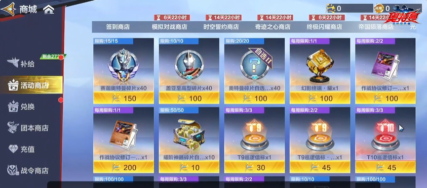 还有经典返场,队员们能参与翻牌玩法,去抽奖池里面丰厚的奖励,每一次翻牌都可能带来惊喜。本次也有活动兑换商店,首次返场赛迦奥特曼碎片,还有全新道具助力战力提升;庆典补给礼包也是诚意满满。