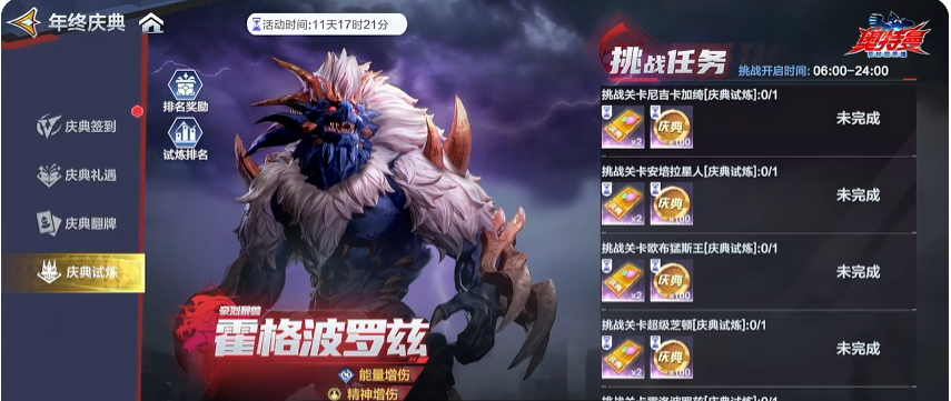 奥特曼超时空英雄年终庆典活动内容就全部给大家爆料完毕了,怎么样,活动的全部内容是不是非常丰富呢,不仅有简单的签到,还有具有挑战性的试炼,总之每种都有丰厚的奖励等待着朋友们,到时候一定要参与其中。