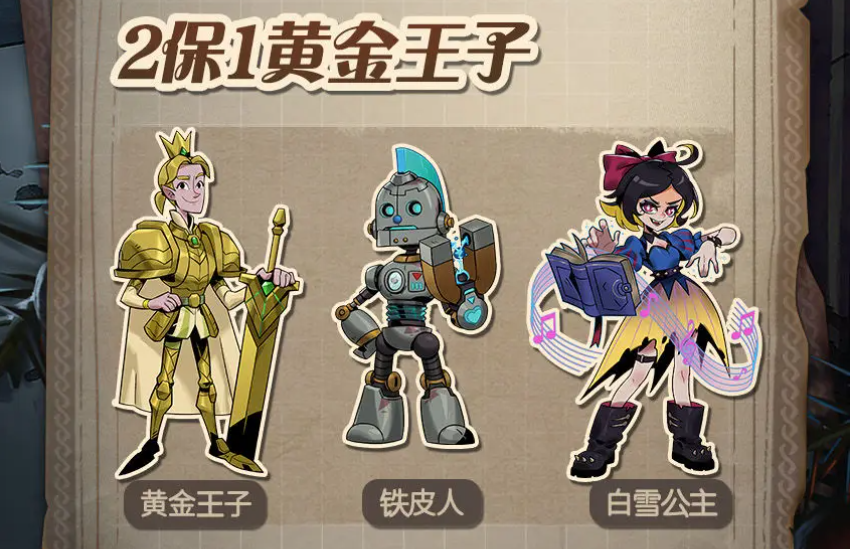 这个队伍里铁皮人主要负责给王子增添溢能,可以加快王子的启动速度,毕竟王子主要能力可以引导圣光的力量,但是在启动上面稍微有点慢,而铁皮人就很好的弥补了这个缺憾;白雪公主给敌方施加易伤效果,黄金王子进行快速收割。