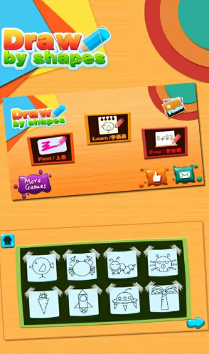 提供画笔、喷枪、填充桶等多种绘图工具及丰富色盘,支持无限制自由创作。界面无功能干扰项,专注绘画本体体验。在涂抹、连线、填色过程中,自然接触几何形状命名(如圆形、三角形)、色彩名称(红、黄、蓝等基础色系)及混色原理,同步锻炼手指小肌肉群控制力与手腕灵活性。