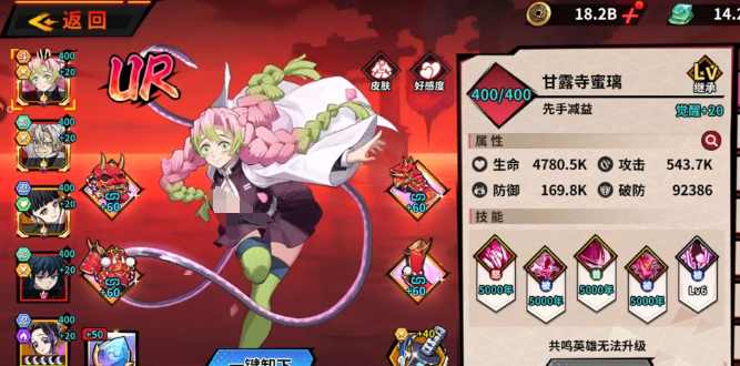 甘露寺蜜璃的核心定位是高频率、高倍率的物理输出单位。其普攻机制设计紧密契合裂伤流需求:当队友成功施加“补工位”状态后,她可立即触发一次追加普攻,实现单次行动双段伤害。此外,她的终结技不仅基础倍率充足,还能额外激活一次普攻判定,在清理残血目标或压制敌方关键单位时具有极强的瞬时压制力。值得注意的是,该角色同时具备自我回复能力,使其在长时间拉锯战中维持生存阈值,有效缓解续航压力——这对依赖多回合持续施压的裂伤体系而言,属于不可或缺的底层支撑。