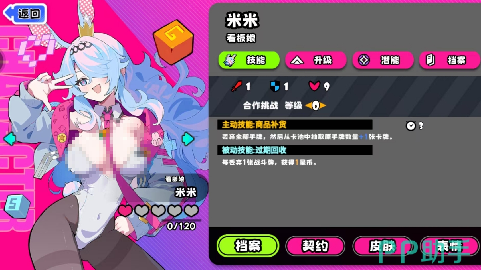 作为基础模式中过牌效率最高的角色之一,米米的核心机制为“弃置全部手牌→抽取弃牌数+1张”。该循环不仅大幅提升卡组运转速度,更可在弃牌时每张额外获得1枚星币。在标准对战中,此能力支撑其快速积累经济、抢占升级节点;在合作模式下,她能稳定为全队提供星币补给,是公认的资源枢纽型角色。