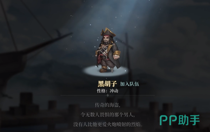 招募黑胡子需依据玩家所选主线剧情推进:若主角为云睦,须先于维塞尔酒吧完成雅卡相关好感度任务,随后驾驶船只前往圣地亚哥港,在港口区域触发专属招募事件;若主角为安德鲁,则可在主线流程抵达酒馆后直接与其对话并开启招揽流程。此外,同步完成“珍宝舰队”系列任务亦可提升黑胡子加入概率。该角色具备高成长性与强战术适配性,尤其适合偏好高强度海战对抗的玩家优先纳入主力编队。