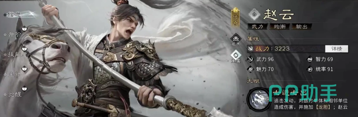 赵云作为一个输出类武将,能靠着反击机制帮助队伍打出高额伤害,然而不少新手在获得他后,却不知道三国天下归心赵云技能怎么去选择,那么下面的赵云攻略就来给大家讲解一下技能上的选择,以及阵容如何搭配,让大家都能让赵云发挥出应有的作用,想学习的赶紧来看一看吧。