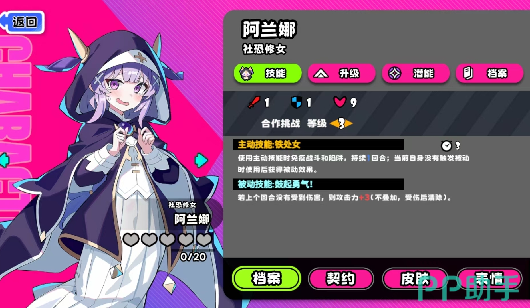 《吉星派对》中阿兰娜是一位机制独特、功能鲜明的辅助型角色。她拥有两项核心能力:一是主动技能可完全规避战斗与陷阱判定,二是未受伤害时自动触发“攻击+3”的被动效果。这两项特性使她在特定模式下具备不可替代的战略价值,尤其在多人协作场景中表现突出。