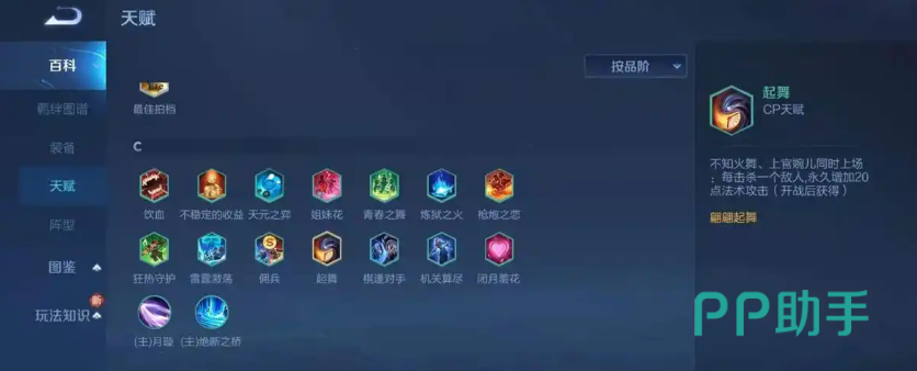这样在实战中不管是去凑远法、女刺还是近法都是相当不错的,天赋上一定要选的就是起舞,起舞能让火舞、婉儿每成功击杀一个敌人,就永久增加20点法术攻击完美契合养猪,此外可以拿可上阵人数加1的扩军,上个宫本凑个三扶桑,另外也可以拿嗜血之影和混乱之术。