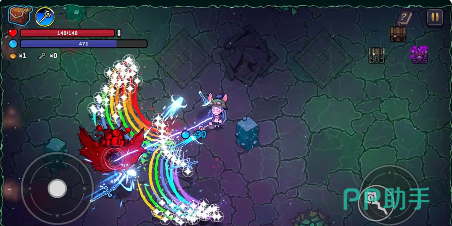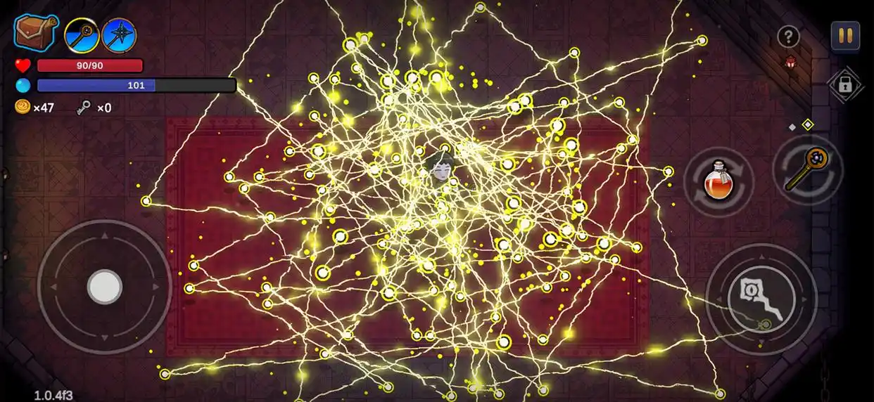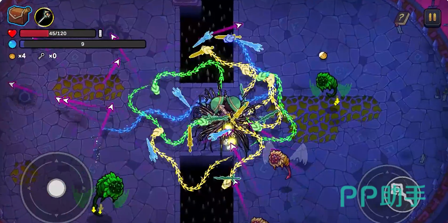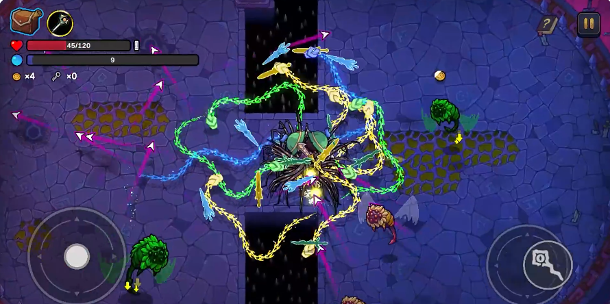 画风是Q版暗黑风格,将克鲁苏神话元素巧妙的融入其中,打造了充满神秘,压迫感慢慢的世界;这里能看到扭曲的古神触手,寄生孢子怪物,还有异变森林、时空裂缝,每关都带来迥异的视觉风格,机制也各异,还有随机的地图和道具。