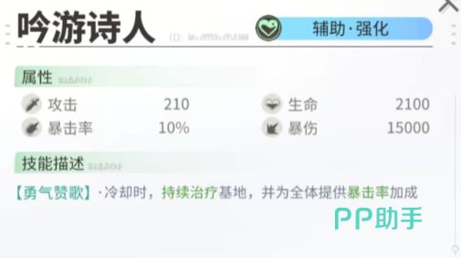 在中后期开始,小护士就会有些不够用了,毕竟这位的上限并不是很高,咱们是不可能投入太多的资源来去培养她的。这个阶段比较推荐吟游诗人这个角色。这个角色本身是属于强化辅助类型的奶妈。整体的属性从目前来看还是很不错的。